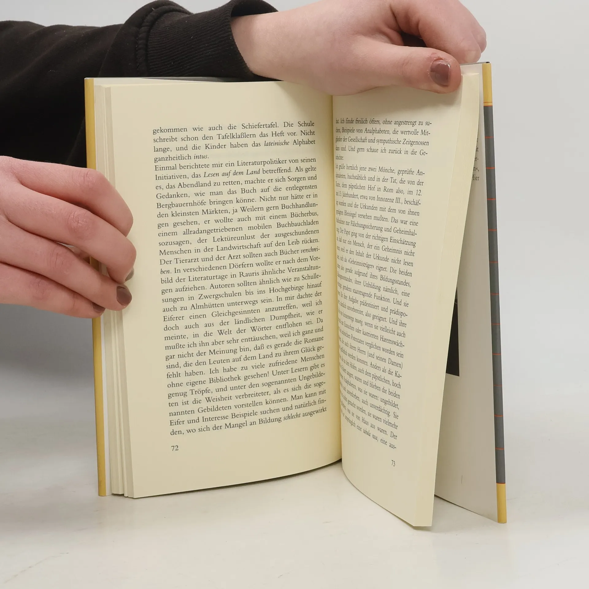 Auf einer in Holz gefaßten Schiefertafel hat Alois Brandstetter schreiben gelernt. Schönschreiben. Die Liebe zur Schrift ist ihm geblieben. Schon als Student fühlte er sich zu wertvollen Pergamenten hingezogen - und zu denjenigen, die sie verfaßten oder sich damit befaßten. Wer, wenn nicht sie, verdiente den Namen „Philologe“, wer sonst darf als wahrer „Liebhaber des Buchstabens“, als „Vertrauter des Textes“ gelten? Mit Alkuin von York als Wegbegleiter unternimmt Brandstetter einen vergnüglichen, lehrreichen Streifzug durch die Welt der klösterlichen Schreibwerkstätten, Drucktechniken bis hin zur Graphologie, die auch für polizeiliche Ermittlungen eingesetzt wird. Vor diesem Hintergrund nimmt sich so manche neuere Entwicklung, ob Rechtschreibreform oder Computerfetischismus, ein wenig seltsam und auch beklagenswert aus - das Manuskript im klassischen Sinn ist ja so gut wie verschwunden! Und so wird dem Leser augenzwinkernd, aber nachdrücklich klargemacht, das mit jedem Fortschritt immer auch Verlust einhergeht.