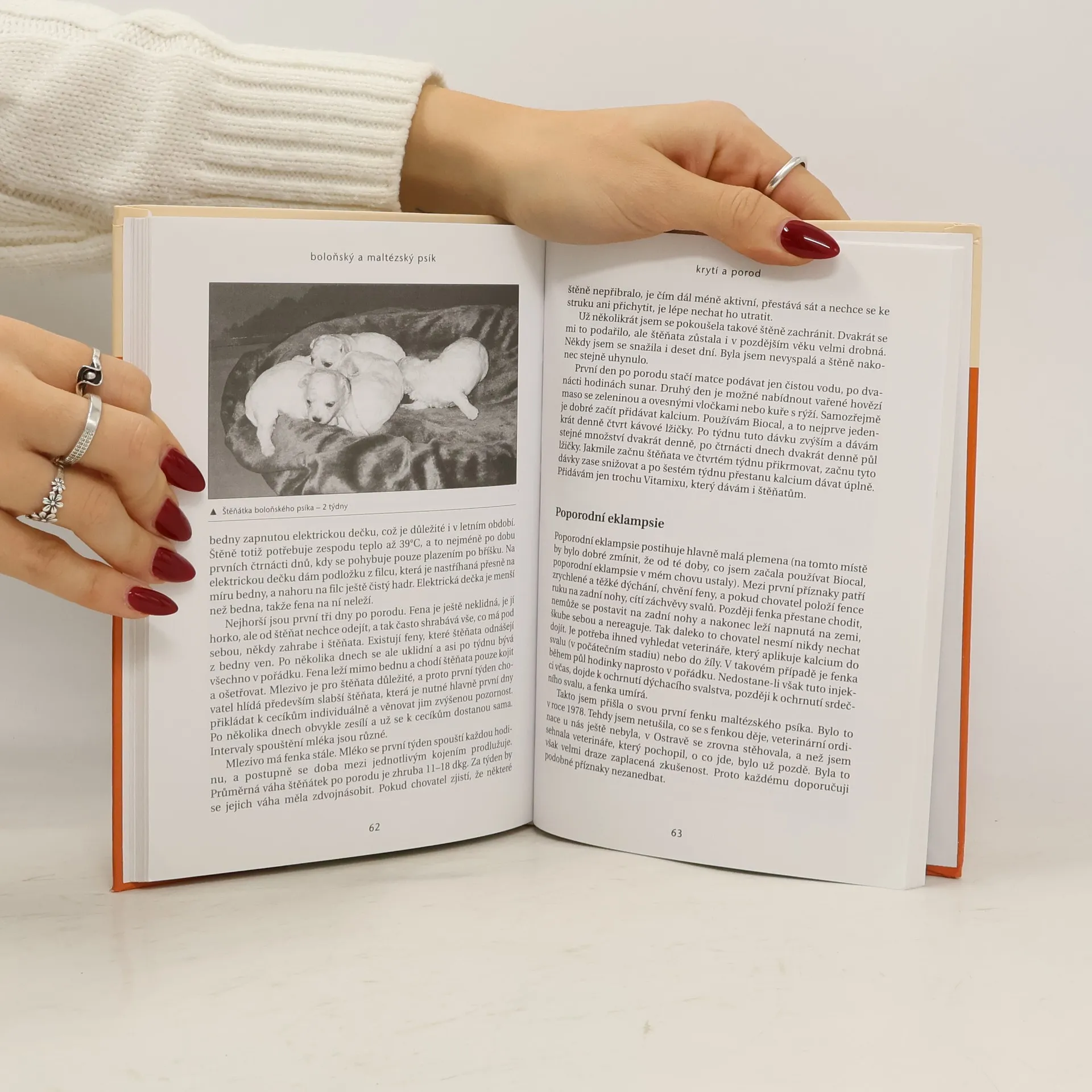 Plemeno boloňský a maltézský psík, původem z Itálie, začíná být i u nás stále ve větší oblibě. Publikace Hildy Kuběnové mapuje toto plemeno počínaje nástinem původu a stručné historie, krátce zmiňuje počátky chovu u nás, všímá si jednotlivých konkrétních odlišností, které existují mezi psíkem boloňským a maltézským. Autorka, dlouholetá a zkušená chovatelka, neopomíjí podrobně popsat situaci, která nastane ve chvíli, kdy si nový majitel přinese malého psíka domů, jakož i výčet možných onemocnění a případných komplikací. Čtenář zde v neposlední řadě nalezne užitečné rady, jak o tyto psíky pečovat a jak se chovat na výstavách. Druhé rozšířené a doplněné vydání úspěšné monografie.