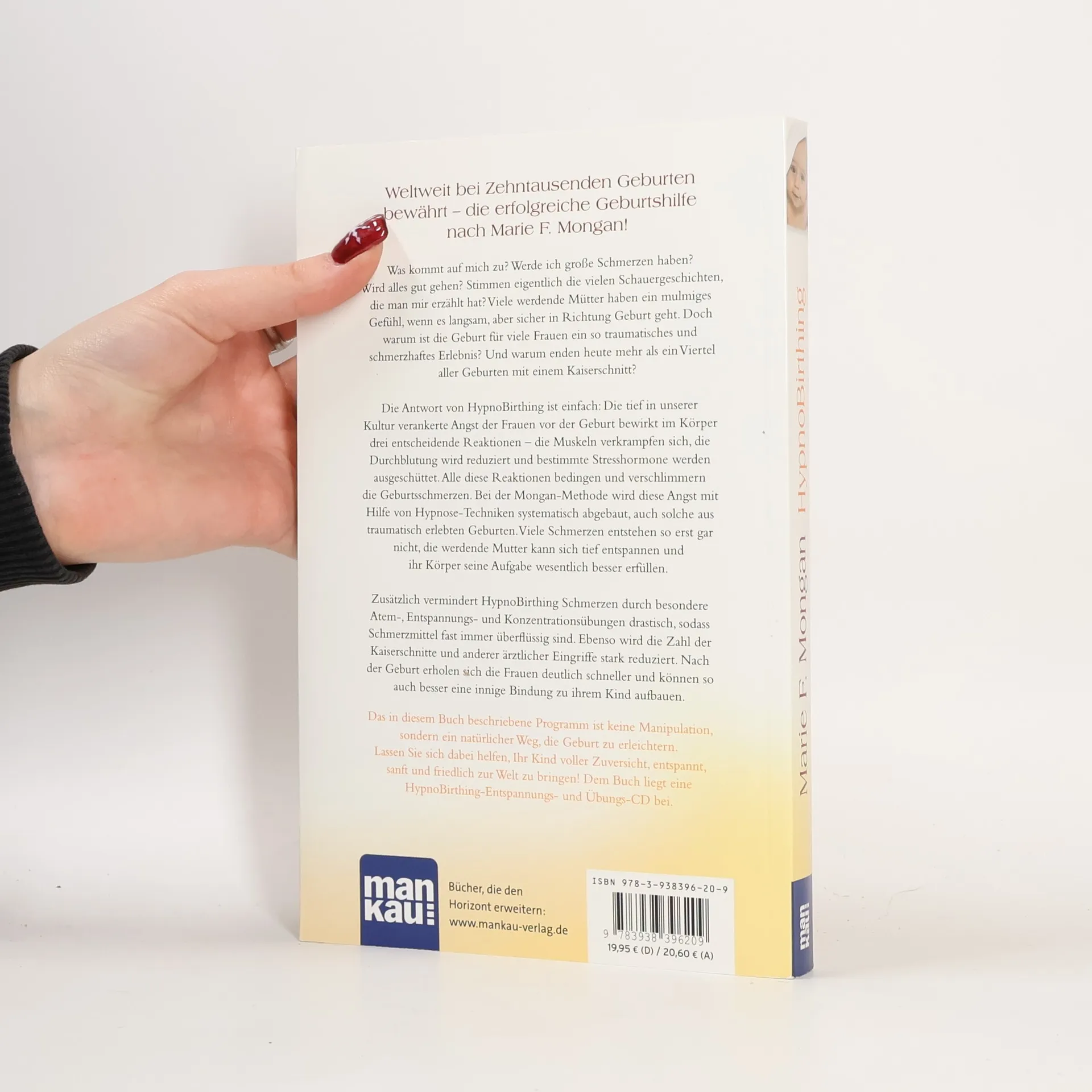 Viele werdende Mütter haben ein mulmiges Gefühl, wenn es auf die Geburt zugeht. Die Mongan-Methode von HypnoBirthing bietet Antworten auf die Fragen und Ängste, die mit der Geburt verbunden sind. Oft wird die Geburt als traumatisch und schmerzhaft erlebt, was dazu führt, dass mehr als ein Viertel aller Geburten mit einem Kaiserschnitt endet. Die tief verwurzelte Angst vor der Geburt führt zu körperlichen Reaktionen: Muskeln verkrampfen, die Durchblutung sinkt, und Stresshormone werden ausgeschüttet, was die Schmerzen verstärkt. HypnoBirthing zielt darauf ab, diese Ängste durch Hypnose-Techniken abzubauen, was dazu führt, dass viele Schmerzen gar nicht erst entstehen. Die werdende Mutter kann sich entspannen, wodurch der Körper seine Aufgabe besser erfüllen kann. Durch spezielle Atem-, Entspannungs- und Konzentrationsübungen werden Schmerzen drastisch reduziert, sodass Schmerzmittel oft überflüssig sind. Zudem sinkt die Anzahl der Kaiserschnitte und ärztlichen Eingriffe erheblich. Frauen erholen sich nach der Geburt schneller und können eine tiefere Bindung zu ihrem Kind aufbauen. Das beschriebene Programm ist ein natürlicher Weg, die Geburt zu erleichtern, und unterstützt werdende Mütter dabei, ihr Kind entspannt und voller Zuversicht zur Welt zu bringen. Eine HypnoBirthing-Entspannungs- und Übungs-CD ist ebenfalls enthalten.