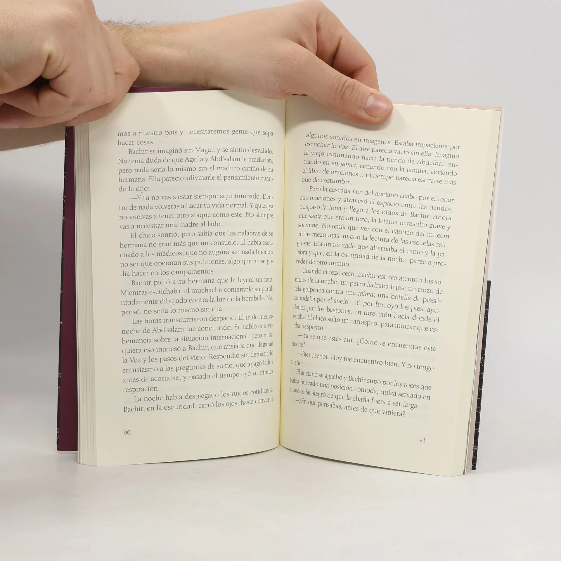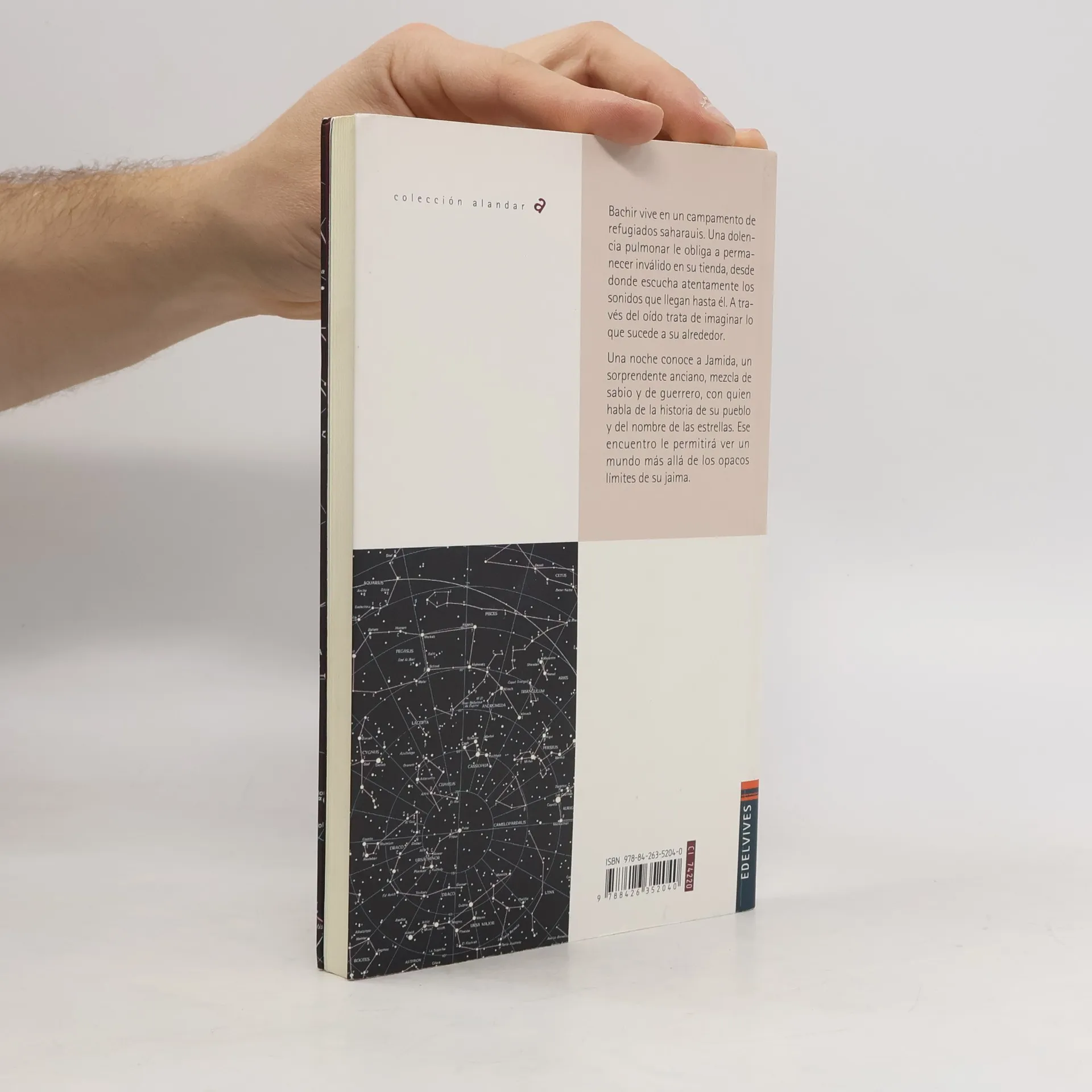 Bachir vive en un campamento de refugiados saharauis. Una dolencia pulmonar le obliga a permanecer inválido en su tienda, desde donde escucha atentamente los sonidos que llegan hasta él. A través del oído trata de imaginar lo que sucede a su alrededor. Una noche conoce a Jamida, un sorprendente anciano, mezcla de sabio y de guerrero, con quien habla de la historia de su pueblo y del nombre de las estrellas. Ese encuentro le permitirá ver un mundo más allá de los opacos límites de su jaima.