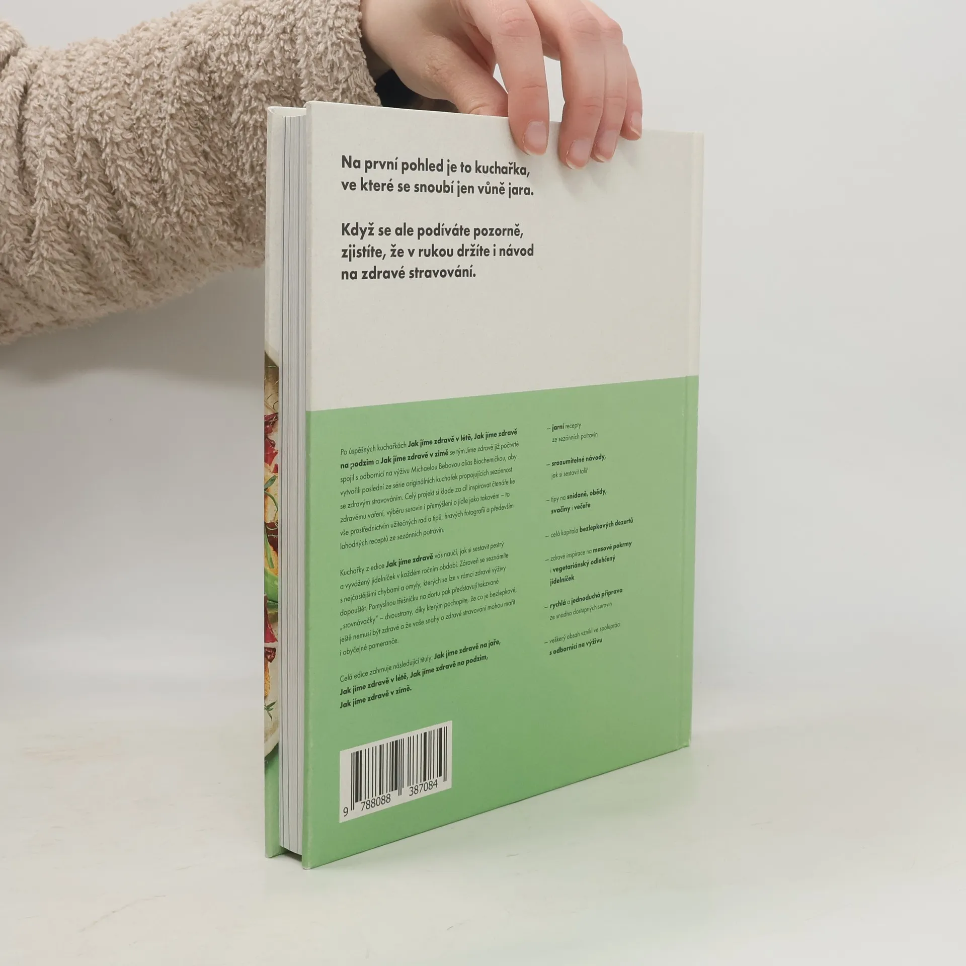 Tým Jíme zdravě se ve spolupráci s odbornicí na výživu Michaelou Bebovou opět zaměřil na propojení sezónnosti se zdravým stravováním. Nová kuchařka nabízí možnost sestavit vyvážený jídelníček pro celou rodinu. Kniha je rozdělena do čtyř kapitol. První kapitola se věnuje zdravým snídaním s vejci, kde najdete recepty na oblíbená jídla jako vejce Benedikt nebo nadýchanou omeletu. Dále se můžete těšit na lahodná hlavní jídla s kvalitním libovým masem, jako jsou řízky nebo lehký pstruh s pečenou mrkví. Kapitola Jarní odlehčení přináší recepty na polévky, saláty, smoothies a šťávy, včetně špenátové polévky se zastřenými vejci a hravých barevných salátů. Na závěr se můžete těšit na dezerty bez výčitek v kapitole Bezlepkové svačiny, kde vyniká mandlovopomerančová bábovka a rýžový pudink s višněmi. Kniha nabízí 90 jarních sezónních receptů, srozumitelné návody, detoxikační desatero a rady pro jarní klíčení. Recepty jsou psány hravou formou, což usnadňuje přípravu i začátečníkům. Veškerý obsah vznikl ve spolupráci s odbornicí na výživu.