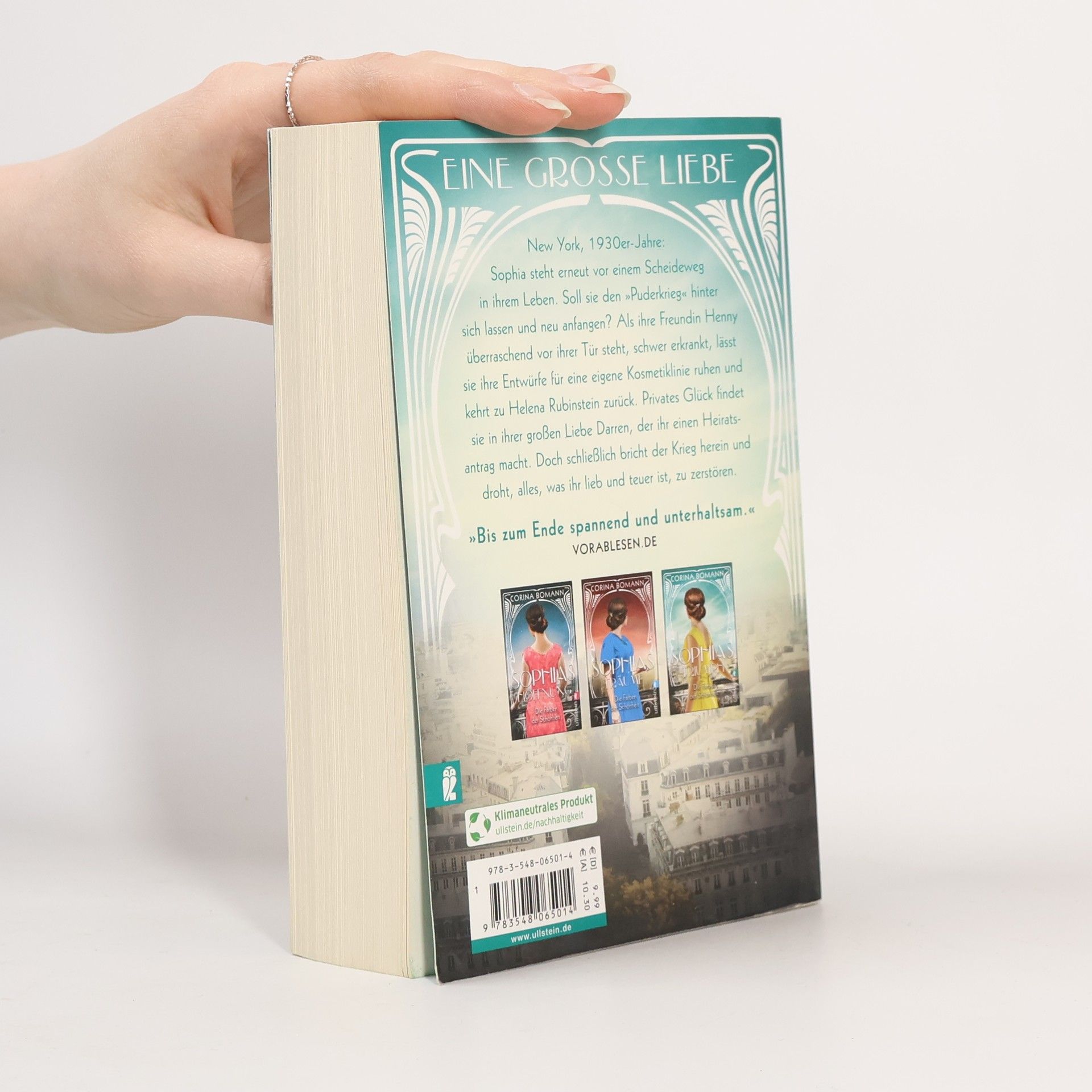 Eine große Liebe New York, 1930er Jahre: Sophia steht erneut vor einem Scheideweg in ihrem Leben. Soll sie den »Puderkrieg« hinter sich lassen und neu anfangen? Als ihre Freundin Henny überraschend vor ihrer Tür steht, schwer erkrankt, lässt sie ihre Entwürfe für eine eigene Kosmetiklinie ruhen und kehrt zu Helena Rubinstein zurück. Privates Glück findet sie in ihrer großen Liebe Darren, der ihr einen Heiratsantrag macht. Doch schließlich bricht der Krieg herein und droht, alles, was ihr lieb und teuer ist, zu zerstören.