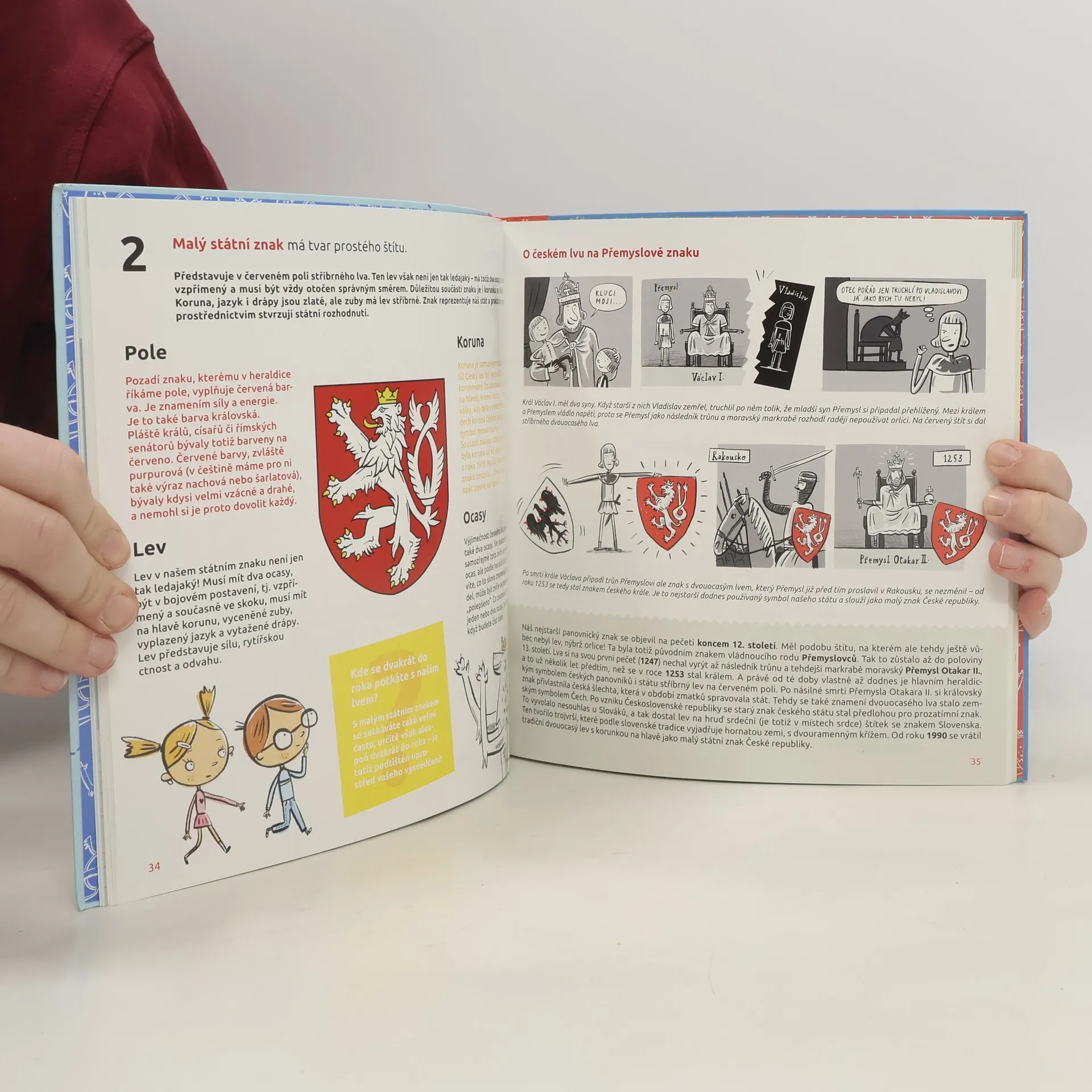 Zábavná a poučná knížka zkušené dvojice autorů a výtvarníků seznamuje čtenáře se symboly české státnosti, jako jsou například vlajka, hymna, pečeť či státní znak. Zabývají se jejich původem a významem či využitím a nabízejí i další souvislosti, třeba s poštovními známkami.