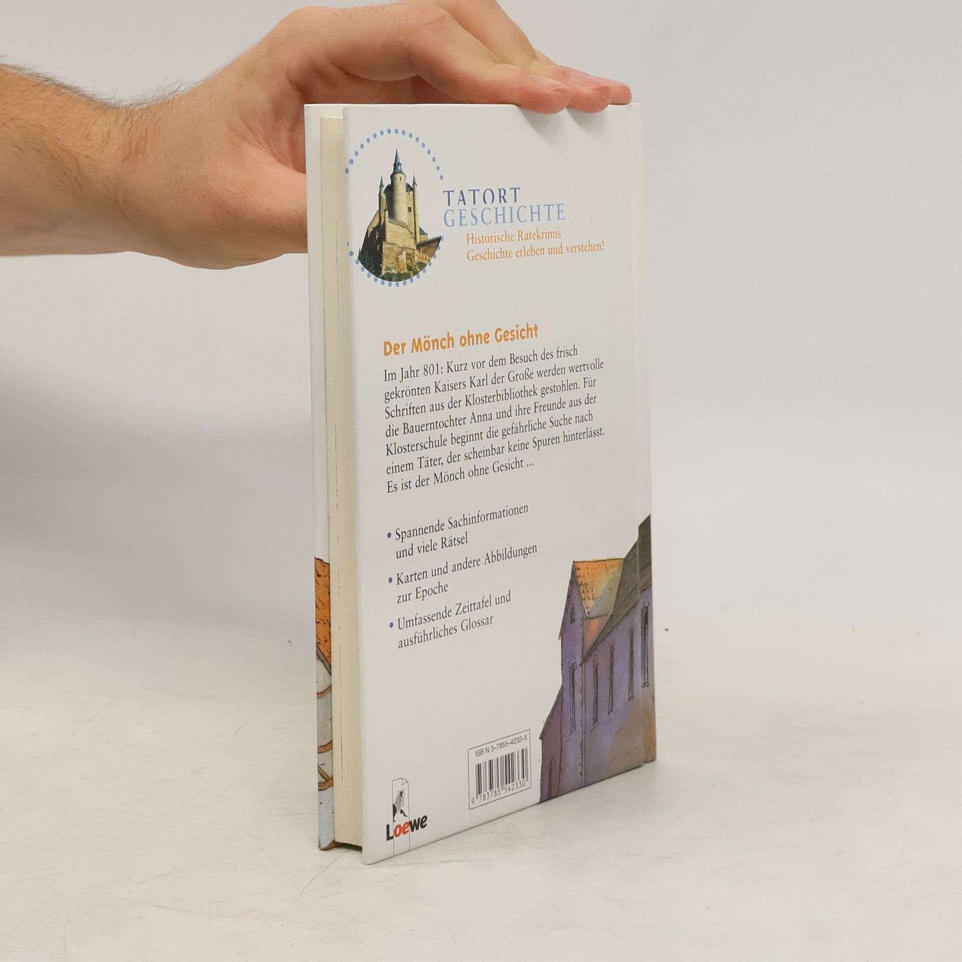 Spannende Sachinformationen und viele Rätsel Karten und andere Abbildungen zur Epoche Umfassende Zeittafel und ausführliches Glossar Im Jahr 800: Kurz vor dem Besuch des frischgekrönten Kaisers Karl der Große werden wertvolle Schriften aus der Klosterbibliothek gestohlen. Für die Bauerntochter Anna und ihre Freunde aus der Klosterschule beginnt die gefährliche Suche nach einem Täter, der scheinbar keine Spuren hinterlässt. Es ist der Mönch ohne Gesicht. Historische Ratekrimis: Geschichte erleben und verstehen!