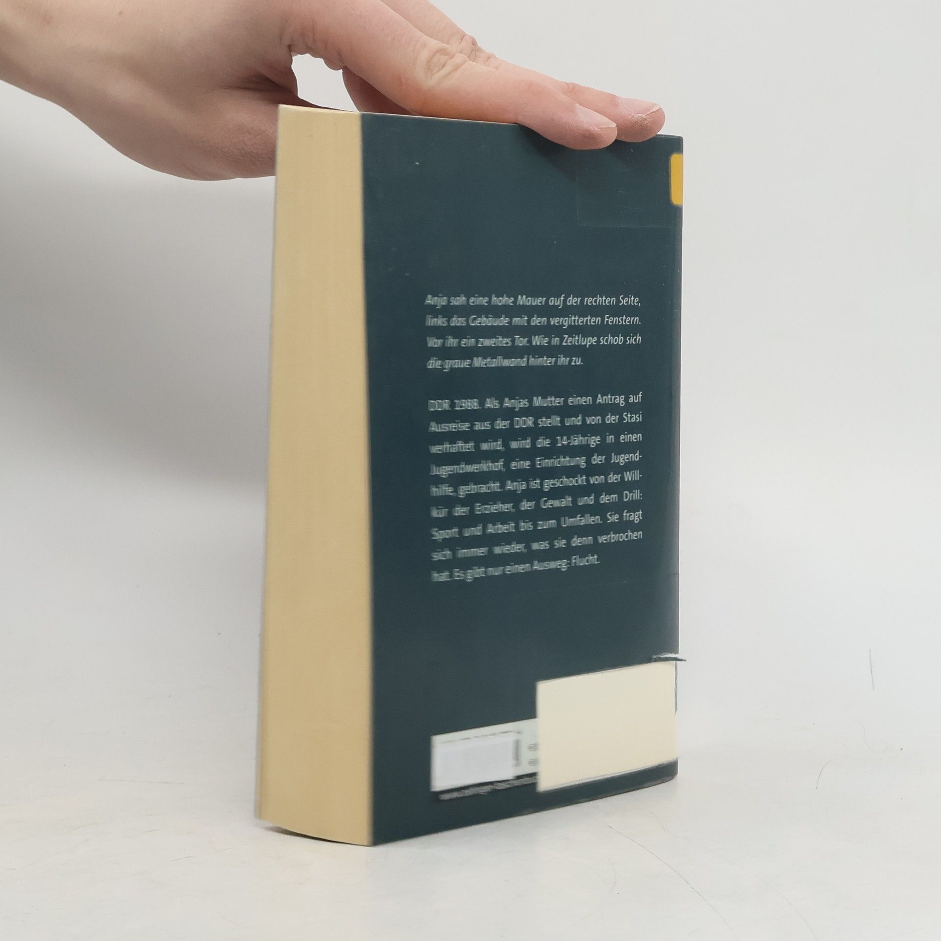 Niemals aufgeben! Flucht aus dem Erziehungsheim. Anjas Mutter stellt einen Ausreiseantrag aus der DDR und wird von der Stasi verhaftet. Die 14-jährige kommt in einen Jugendwerkhof, eine Einrichtung der Jugendhilfe. Geschockt von der Willkür der Erzieher, der Gewalt und dem Drill, will Anja bald nur noch fliehen. Tatsächlich gelingt ihr die Flucht, aber nur für kurze Zeit. Anja fragt sich immer wieder, was sie eigentlich verbrochen hat. Als sie eines Tages ausrastet, bringt man sie nach Torgau, in eine geschlossene Einrichtung. Dort lernt sie Tom kennen, der wie sie nicht aufgeben will. Ein spannender Roman über Willkür und Gewalt im Jugendwerkhof in der DDR. Sorgfältig recherchiert von der Autorin, die selbst in der Bürgerrechtsbewegung engagiert war.