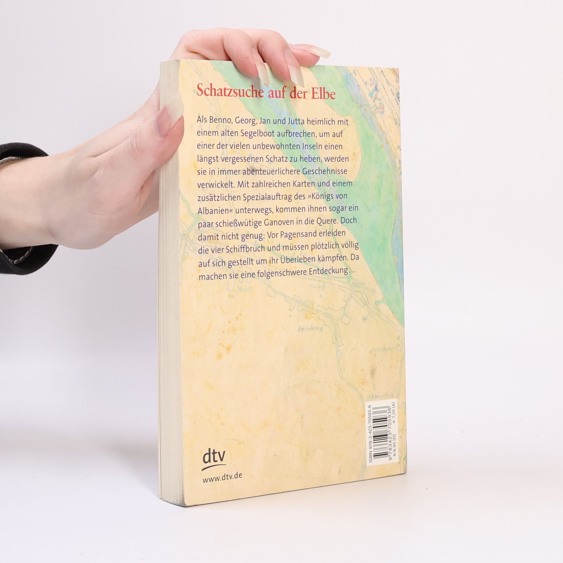 Schatzsuche auf der Elbe! Als Benno, Georg, Jan und Jutta heimlich mit einem alten Segelboot aufbrechen, um auf einer der vielen unbewohnten Inseln einen längst vergessenen Schatz zu heben, werden sie in immer abenteuerlichere Geschehnisse verwickelt. Mit zahlreichen Karten und einem zusätzlichen Spezialauftrag des ›Königs von Albanien‹ unterwegs, kommen ihnen sogar ein paar schießwütige Ganoven in die Quere. Doch damit nicht genug: Vor Pagensand erleiden die Vier Schiffbruch und müssen plötzlich völlig auf sich gestellt um ihr Überleben kämpfen. Da machen sie eine folgenschwere Entdeckung...