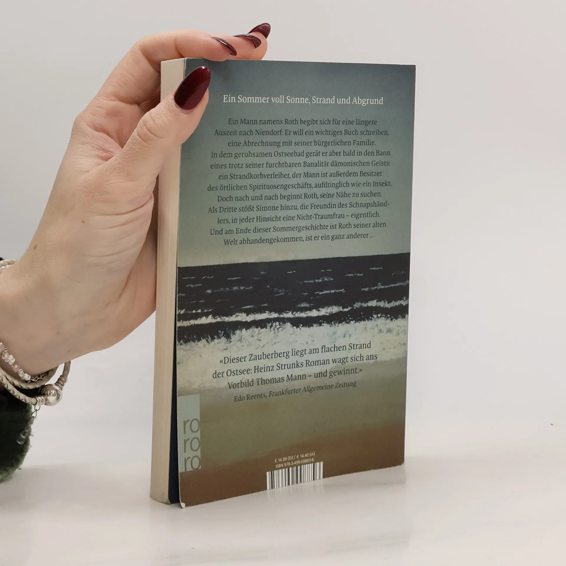Ein Mann namens Roth begibt sich für eine längere Auszeit nach Niendorf: Er will ein wichtiges Buch schreiben, eine Abrechnung mit seiner bürgerlichen Familie. In dem geruhsamen Ostseebad gerät er aber bald in den Bann eines trotz seiner furchtbaren Banalität dämonischen Geists: ein Strandkorbverleiher, der Mann ist außerdem Besitzer des örtlichen Spirituosengeschäfts, aufdringlich wie ein Insekt. Doch nach und nach beginnt Roth, seine Nähe zu suchen. Als Dritte stößt Simone hinzu, die Freundin des Schnapshändlers, in jeder Hinsicht eine Nicht-Traumfrau – eigentlich. Und am Ende dieser Sommergeschichte ist Roth seiner alten Welt abhandengekommen, ist er ein ganz anderer …