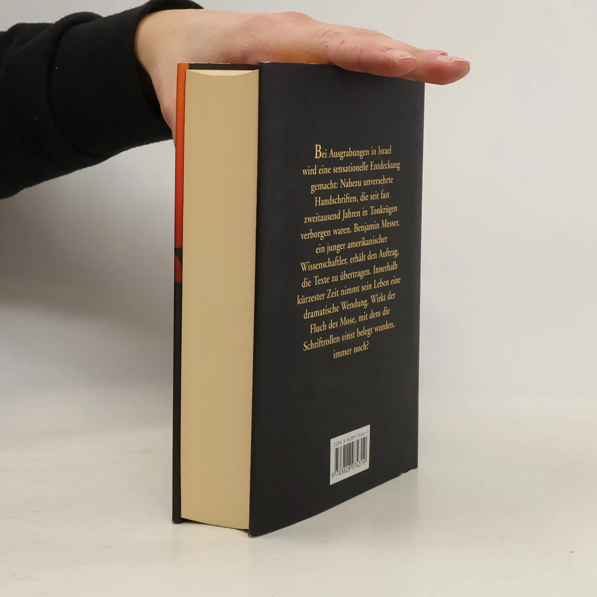 In das geordnete Dasein von Benjamin Messer platzt eine Briefsendung aus Israel. Sein alter Professor, Dr. Weatherby, ist dort bei Ausgrabungen auf einen sensationellen Fund gestoßen: Nahezu unversehrte Handschriften, seit fast 2000 Jahren in Tonkrügen verborgen. Bens Aufgabe ist es, den Text der Handschriften zu übersetzen. Benjamin Messer, ein Mittdreißiger und selbst jüdischer Herkunft, ist Dozent für Orientalistik an der Universität von Los Angeles. Die Entzifferung alter Handschriften ist sein Spezialgebiet, und er macht sich mit Feuereifer an die herausfordernde Übersetzungsarbeit. Zu seiner Überraschung handelt es sich bei den Texten nicht um religiöse Aufzeichnungen, wie etwa bei den berühmten Qumran-Rollen, sondern um die Niederschrift einer Art Lebensbeichte. David Ben Jona, ein jüdischer Bewohner Palästinas, hat sie im ersten Jahrhundert, wenige Jahrzehnte nach Christi Tod, für seinen Sohn verfasst. Binnen kurzem ist Benjamin Messer von deren Inhalt wie verhext. Erinnerungen an seine eigene verdrängte Vergangenheit werden wach, an seine streng orthodoxe Erziehung, an den Vater, der in Majdanek ermordet wurde ... Die Texte beginnen mit einem „Fluch des Mose“ gegen alle, die sich die Schriften unrechtmäßig aneignen.