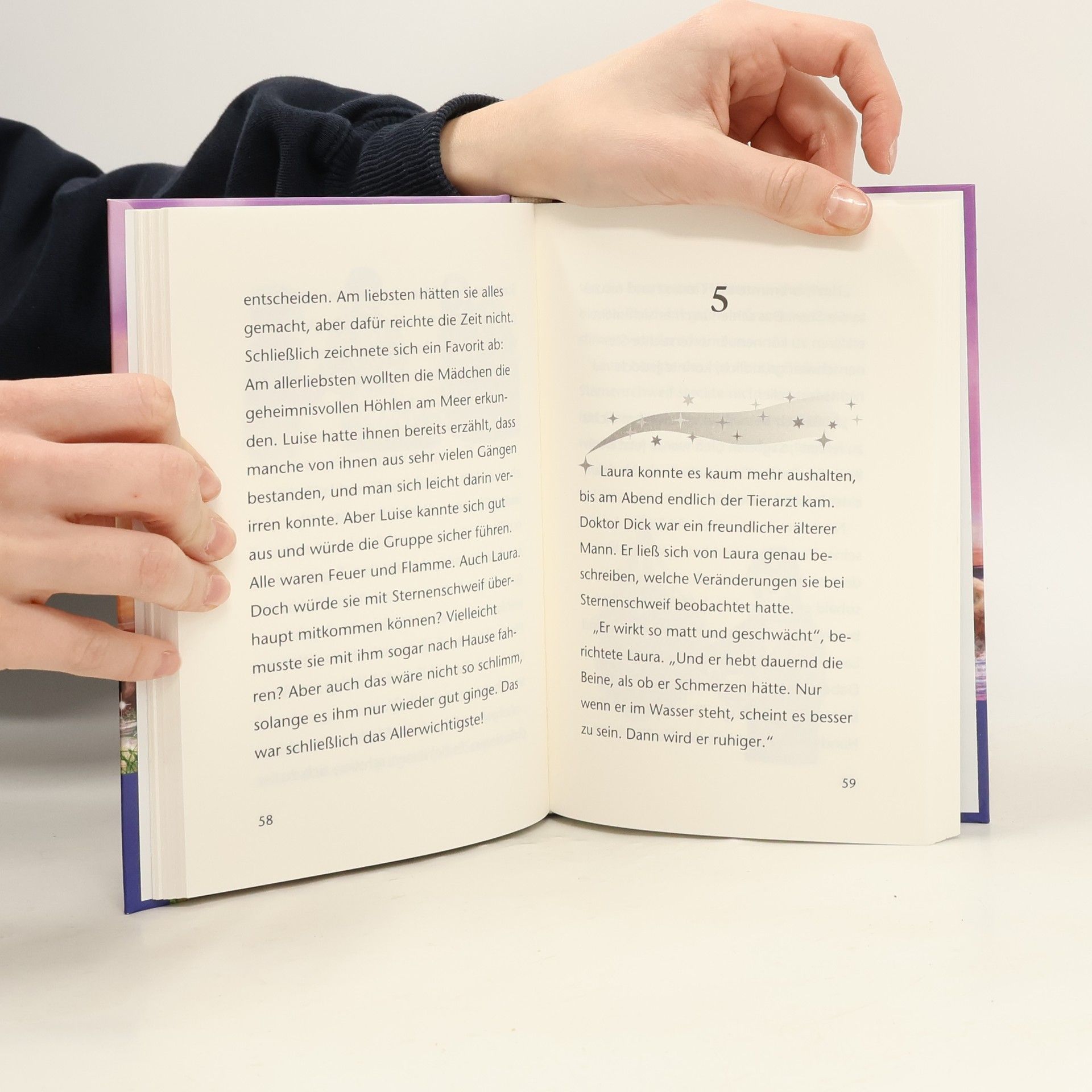 Laura und Sternenschweif dürfen bei dem Reiteraustausch mitmachen. Doch kaum angekommen, wird Sternenschweif krank. Auch der Tierarzt ist ratlos. Laura bittet Sidra, die Hüterin von Arcadia, um Rat. Sternenschweifs einzige Hoffnung: eine goldene Muschel ... Eine spannende und magische Geschichte mit viel Platz zum Träumen!