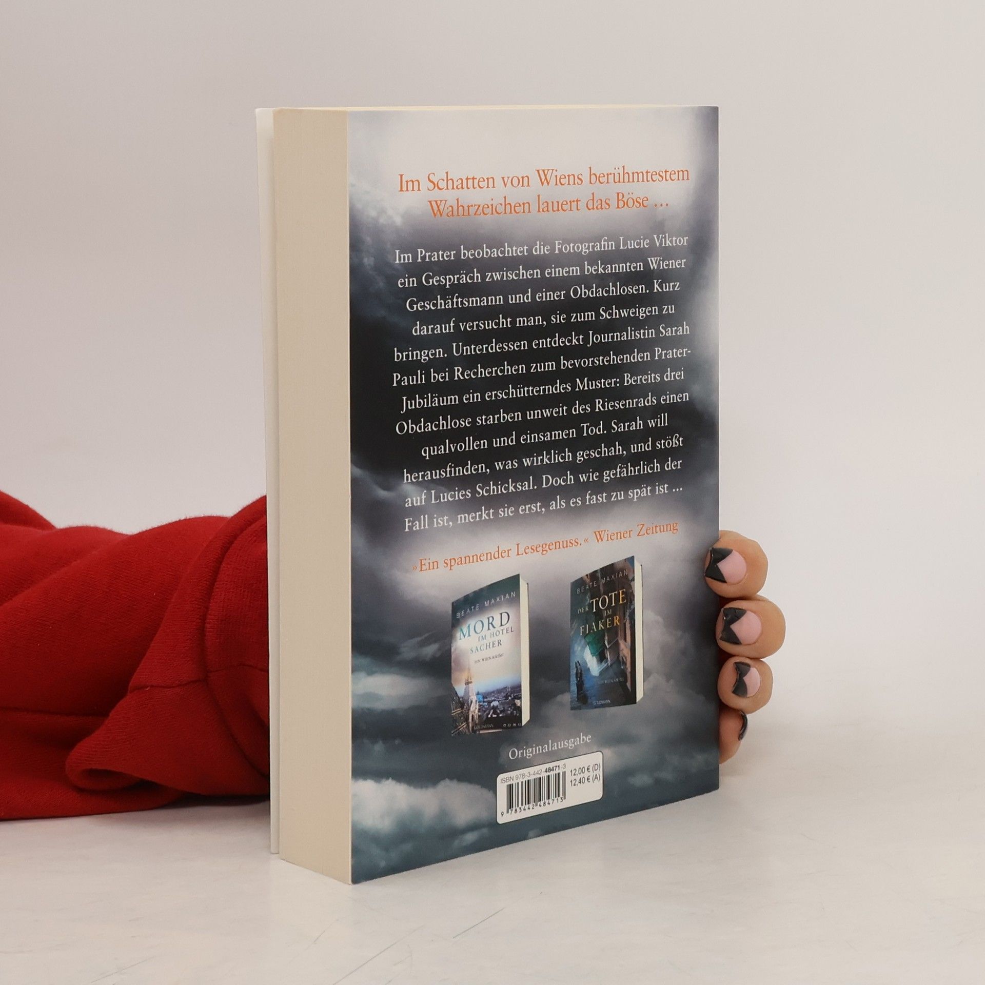 Im Schatten von Wiens berühmtestem Wahrzeichen lauert das Böse … Auf einem ihrer Streifzüge durch den Prater beobachtet die Fotografin Lucie Viktor ein Gespräch zwischen einem bekannten Wiener Geschäftsmann und einer Obdachlosen. Kurz darauf versucht man, sie zum Schweigen zu bringen. Unterdessen schreibt Journalistin Sarah Pauli an einer Reportage zum bevorstehenden Prater-Jubiläum. Dabei entdeckt sie ein erschütterndes Muster: Bereits drei Obdachlose starben unweit des Riesenrads einen qualvollen und einsamen Tod. Sarah will herausfinden, was wirklich geschah, und stößt auf Lucies Schicksal. Doch wie gefährlich der Fall ist, merkt sie erst, als es fast zu spät ist ...