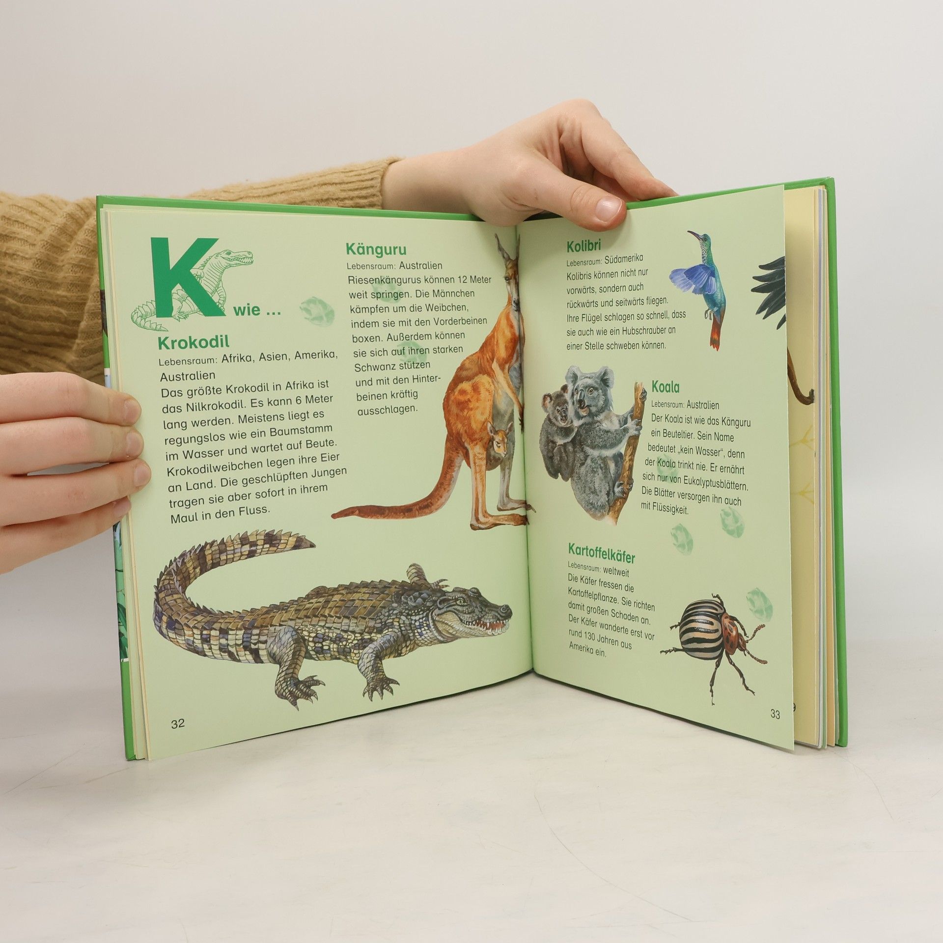 „Wunderschöne, naturgetreue Illustrationen und kurze Texte machen das Lexikon zu einem tollen Buch für die jüngsten Leser. Hier lernen Kinder mit den Tiernamen auch noch ganz nebenbei das Alphabet. Mit Weltkarte und weiteren Ausklapptafeln; in größerem Schriftgrad besonders für Erstleser“