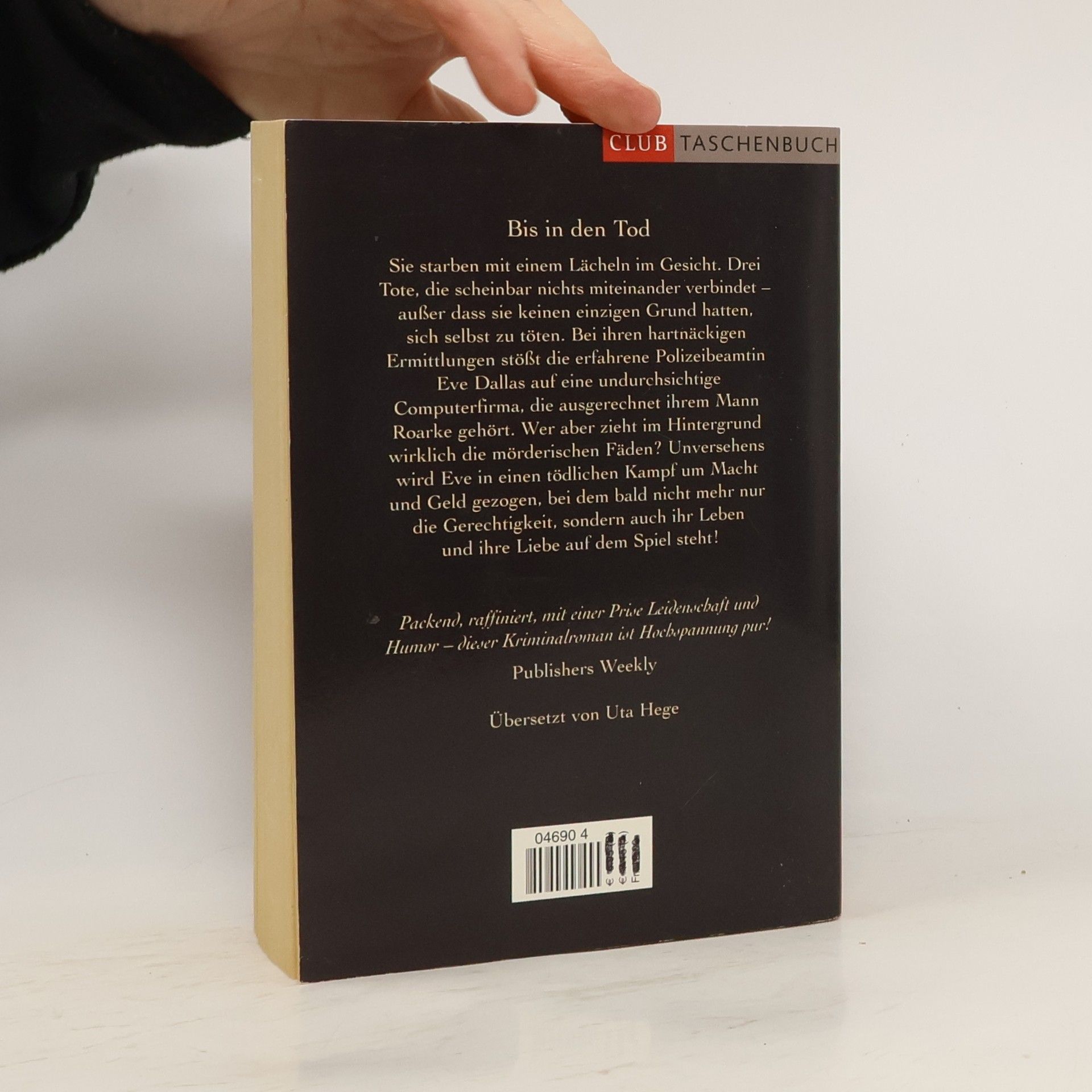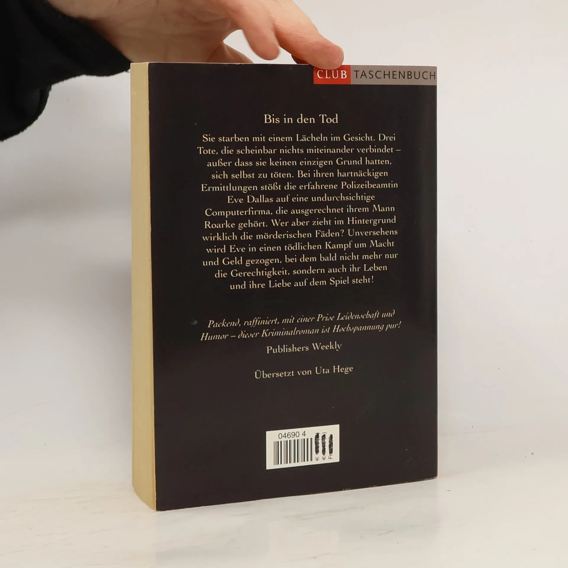 Sie alle sterben mit einem Lächeln im Gesicht. Doch die offensichtlichen Selbstmorde erwecken Zweifel in der gewieften Polizeibeamtin Eve Dallas. Durch ihre hartnäckigen Recherchen stößt sie auf ein geheimnisvolles virtuelles Spiel, das in einer der Firmen ihres angeblich unwissenden Ehemannes Roarke hergestellt wird und das die Welt unterwerfen soll. Unversehens wird Eve in einen teuflischen Machtkampf hineingezogen, dessen Mittelpunkt ihr Mann Roarke darstellt - und bei dem es nur einen Sieger geben kann ...