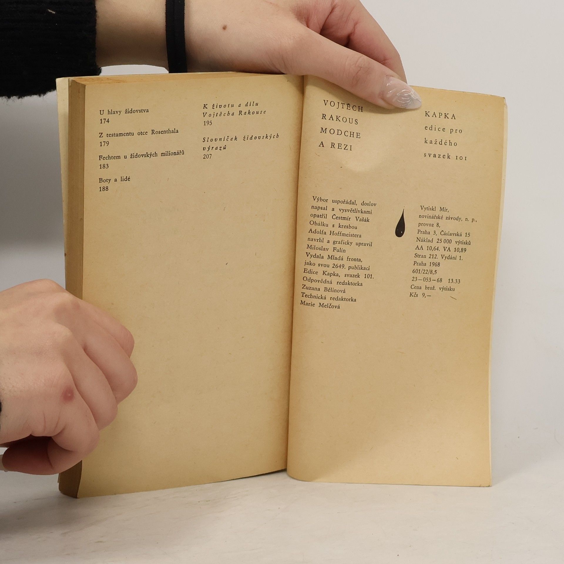 Výbor z humoristických povídek o chudých českých židech venkovských z konce minulého a začátku tohoto století, také však o židech pražských z doby po prvé světové válce. Výbor, řazený podle hlavních autorových cyklů nebo podle témat (Modche a Rezi, Kieslerův Lojza, Dědeček a babička, Židé a židovky), postihuje v humorném až satirickém postřehu rázovité židovské figurky zápasící o holou životní existenci, figurky směšné a přitom lidsky jímavé.