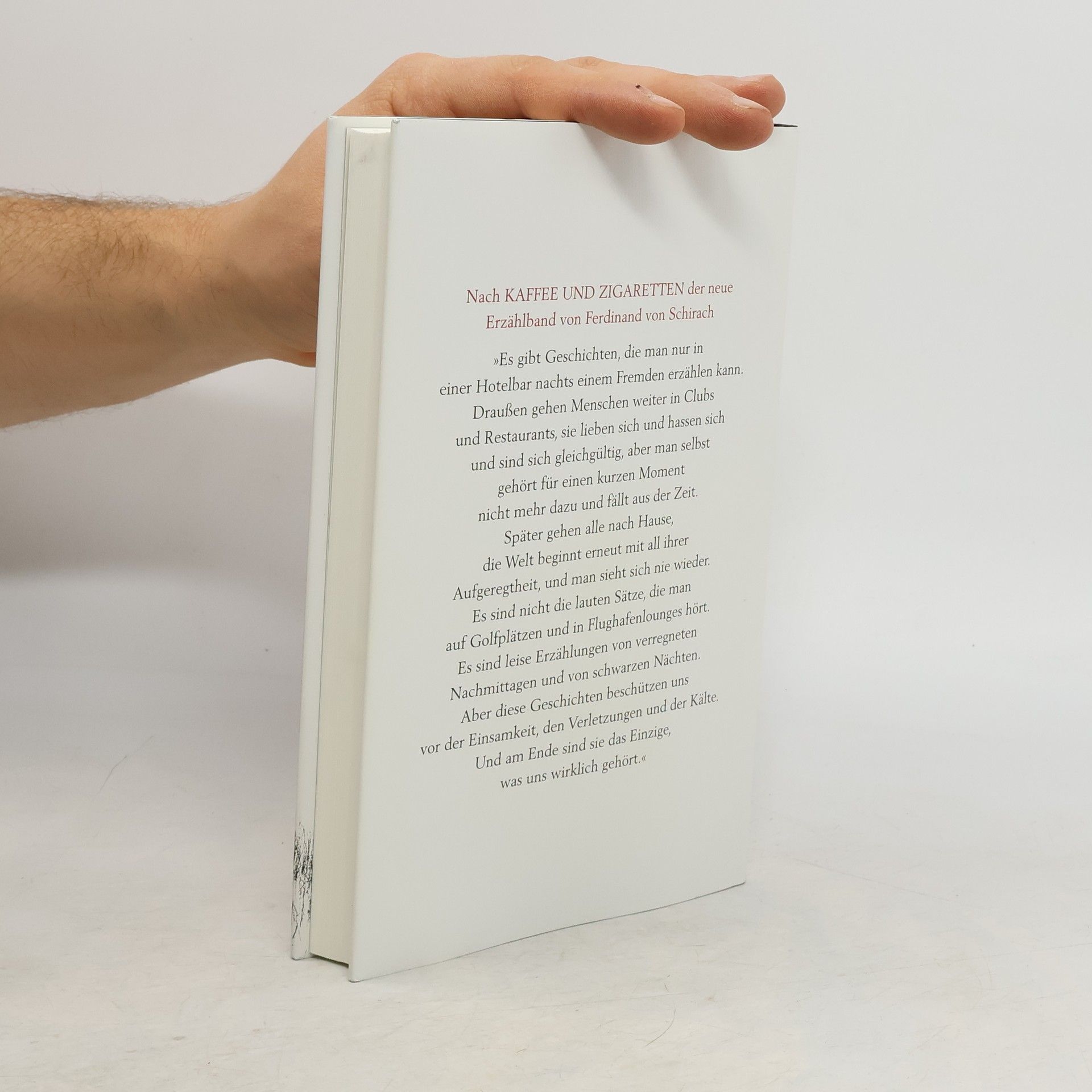 Nach »Kaffee und Zigaretten« der neue Erzählband von Ferdinand von Schirach. Ferdinand von Schirach erzählt von milden Frühsommermorgen, verregneten Nachmittagen und schwarzen Nächten. Seine Geschichten spielen in Berlin, Pamplona, Oslo, Tokio, Zürich, New York, Marrakesch, Taipeh und Wien. Es sind kurze Geschichten über die Dinge, die unser Leben verändern, über Zufälle, falsche Entscheidungen und die Flüchtigkeit des Glücks. Schirach erzählt von der Einsamkeit der Menschen, von der Kunst, der Literatur, dem Film und immer auch von der Liebe.