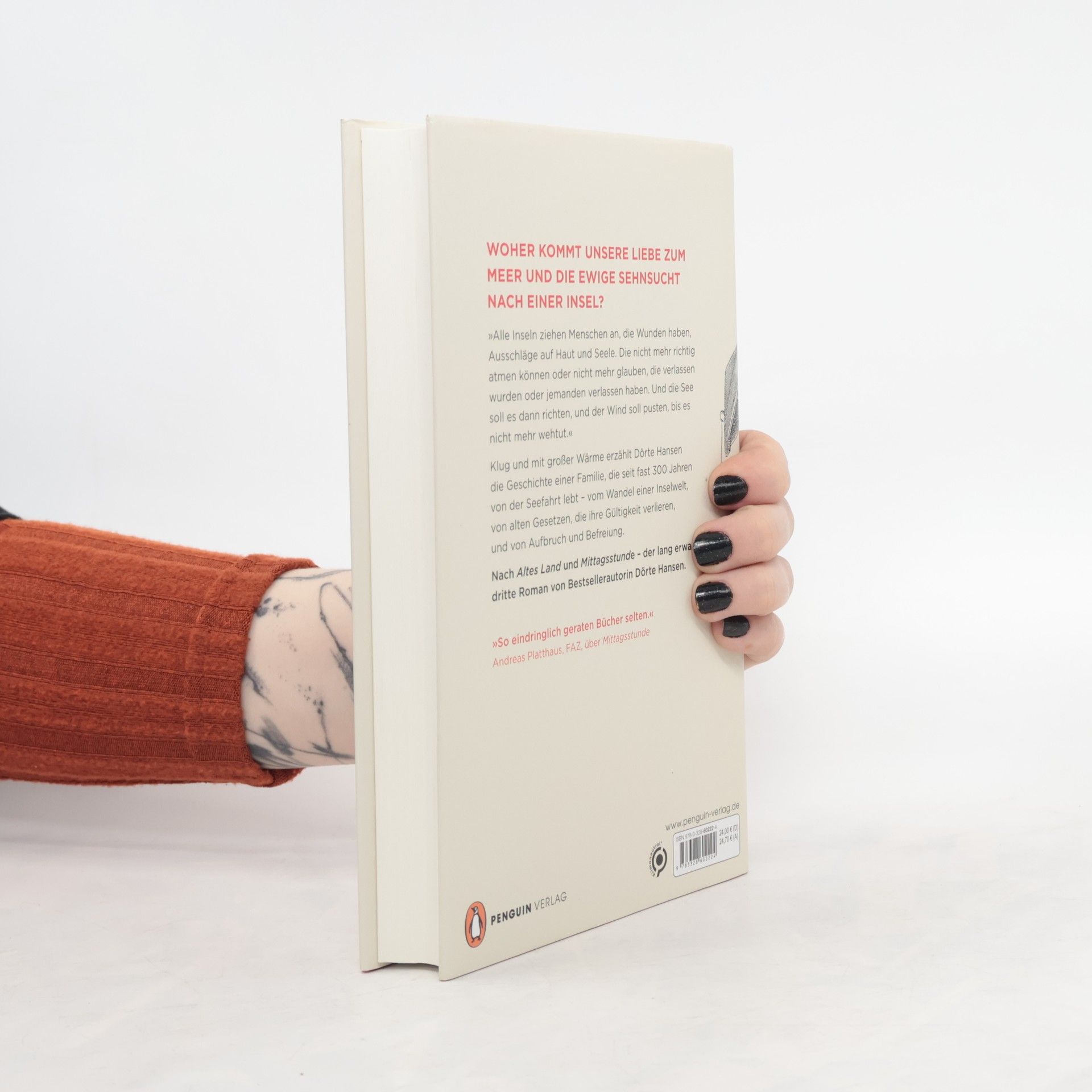 Der dritte Roman von Bestsellerautorin Dörte Hansen. Woher kommt unsere Liebe zum Meer und die ewige Sehnsucht nach einer Insel? Die Fähre braucht vom Festland eine Stunde auf die kleine Nordseeinsel, manchmal länger, je nach Wellengang. Hier lebt in einem der zwei Dörfer seit fast 300 Jahren die Familie Sander. Drei Kinder hat Hanne großgezogen, ihr Mann hat die Familie und die Seefahrt aufgegeben. Nun hat ihr Ältester sein Kapitänspatent verloren, ist gequält von Ahnungen und Flutstatistiken und wartet auf den schwersten aller Stürme. Tochter Eske, die im Seniorenheim Seeleute und Witwen pflegt, fürchtet die Touristenströme mehr als das Wasser, weil mit ihnen die Inselkultur längst zur Folklore verkommt. Nur Henrik, der Jüngste, ist mit sich im Reinen. Er ist der erste Mann in der Familie, den es nie auf ein Schiff gezogen hat, nur immer an den Strand, wo er Treibgut sammelt. Im Laufe eines Jahres verändert sich das Leben der Familie Sander von Grund auf, erst kaum spürbar, dann mit voller Wucht.Klug und mit großer Wärme erzählt Dörte Hansen vom Wandel einer Inselwelt, von alten Gesetzen, die ihre Gültigkeit verlieren, und von Aufbruch und Befreiung.