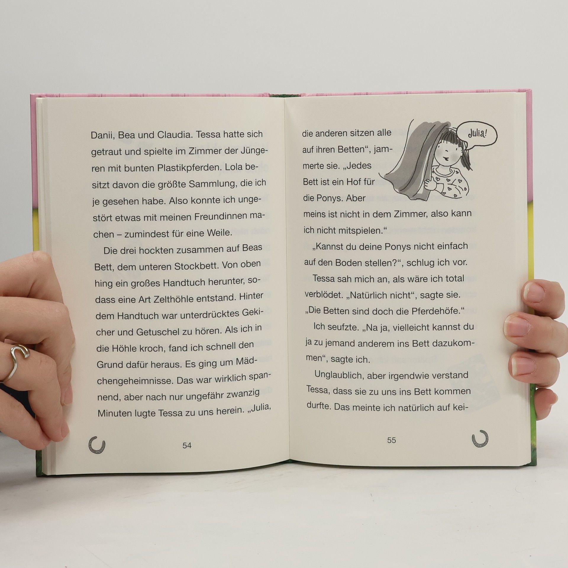 Welches Mädchen wünscht sich nicht ein eigenes Pony? Eigentlich jedes! Auf dem Ponyhof Liliengrün wird dieser Wunsch erfüllt! Eine Woche lang können die Freundinnen nach Herzenslust reiten, striegeln, Stall ausmisten - und natürlich ihr Lieblingspony streicheln! Julia kommt mit ihrer kleinen Schwester auf den Ponyhof. Sie freut sich riesig auf den Geländeritt, aber Tessa hängt ständig wie eine Klette an ihr und verdirbt ihr den Spaß. Doch dann verschwindet das kleine Mädchen und Julia macht sich große Sorgen …