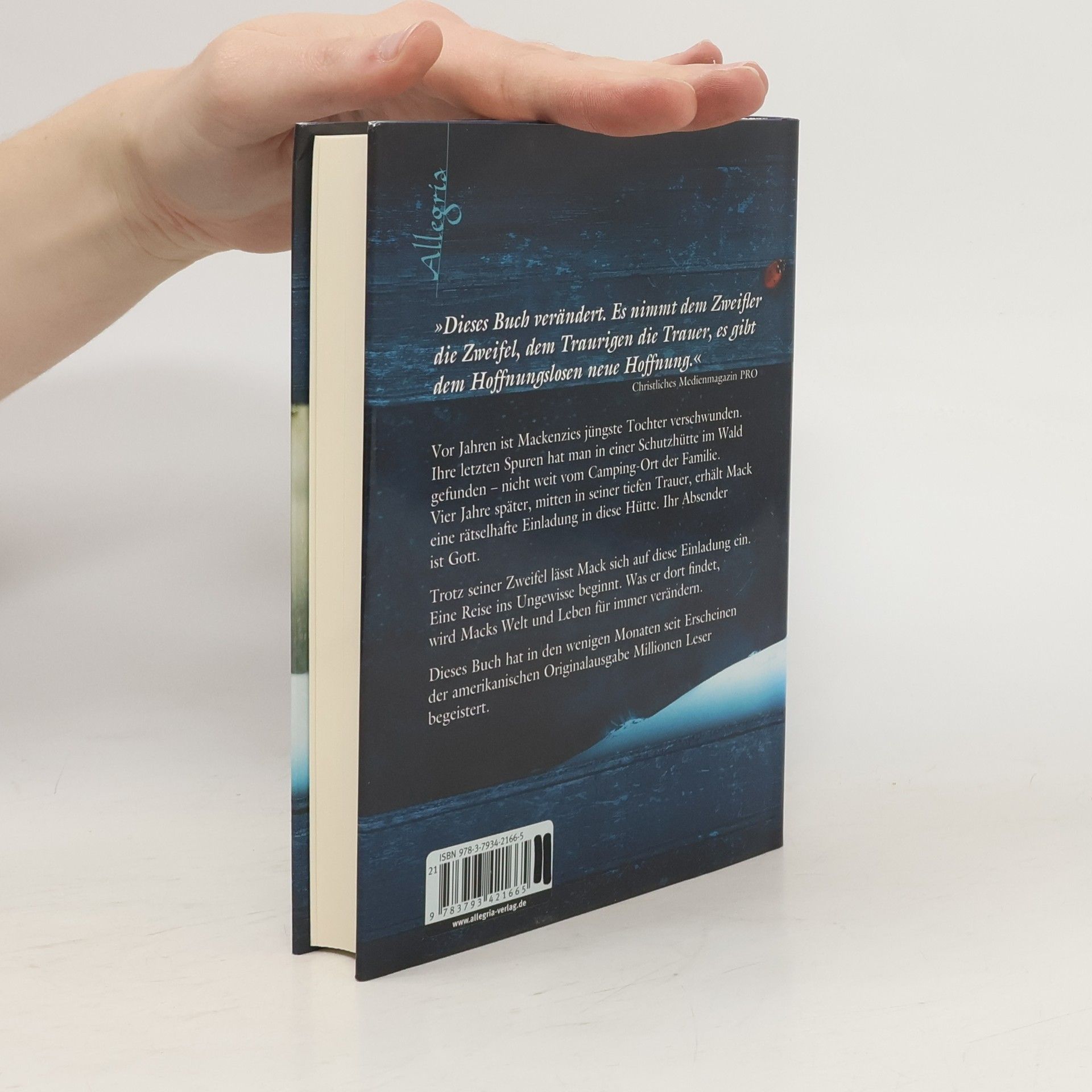 Vor Jahren ist Mackenzies jüngste Tochter verschwunden. Ihre letzten Spuren hat man in einer Schutzhütte im Wald gefunden – nicht weit vom Camping-Ort der Familie. Vier Jahre später, mitten in seiner tiefen Trauer, erhält Mack eine rätselhafte Einladung in diese Hütte. Ihr Absender ist Gott. Trotz seiner Zweifel lässt Mack sich auf diese Einladung ein. Eine Reise ins Ungewisse beginnt. Was er dort findet, wird Macks Welt und Leben für immer verändern ... Dieses Buch hat in den wenigen Monaten seit Erscheinen der amerikanischen Originalausgabe Millionen Leser begeistert.