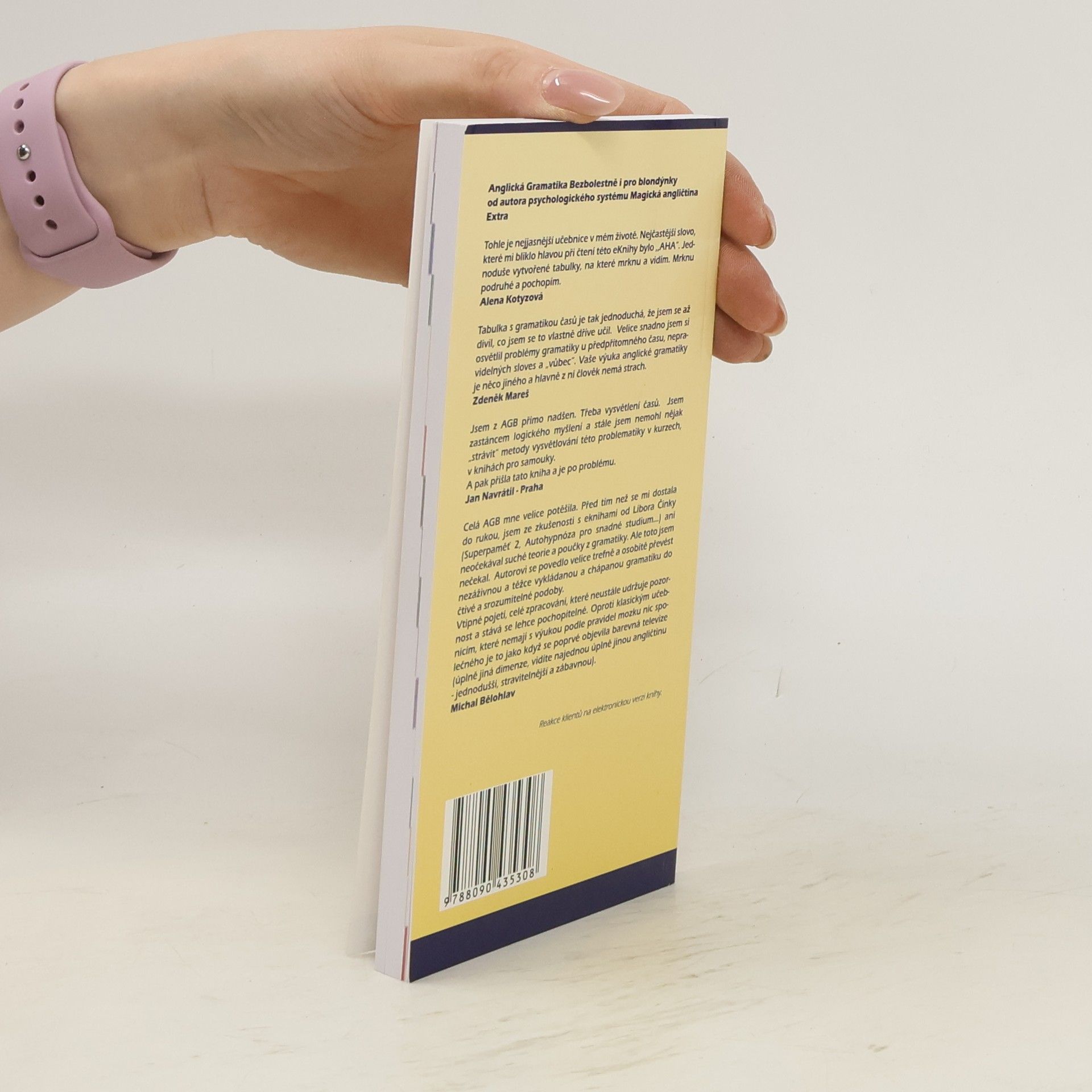 Knižní vydání oblíbené e-knihy s totožným názvem od autora psychologického systému snadného učení Magická Angličtina Extra. Kniha o gramatice je určena všem, kteří se chtějí učit snadněji a ve zlomku času oproti klasickým postupům. Je doplňkem MAE, ale i jakékoliv jiné metody, kterou používáte. * Chcete se přestat trápit s anglickou gramatikou? * Chcete přehledný zdroj pro okamžité použití v praxi namísto teorie? * Potřebujete si utřídit myšlenky? * Rádi byste se zábavně naučili to, co bývá považováno za strašně těžké? Snadno srozumitelné pasáže v gramatických učebnicích najdete zřídka a zbytek bývá obtížně pochopitelný. Autor se rozhodl udělat tuto knihu tak čtivou, aby se čtenář bavil, zasmál a postupně zapomněl, že se učí. A co ten název? Chtěl, aby to bylo opravdu snadné, jakoby existovaly hloupé bytosti identifikovatelné barvou vlasů.
