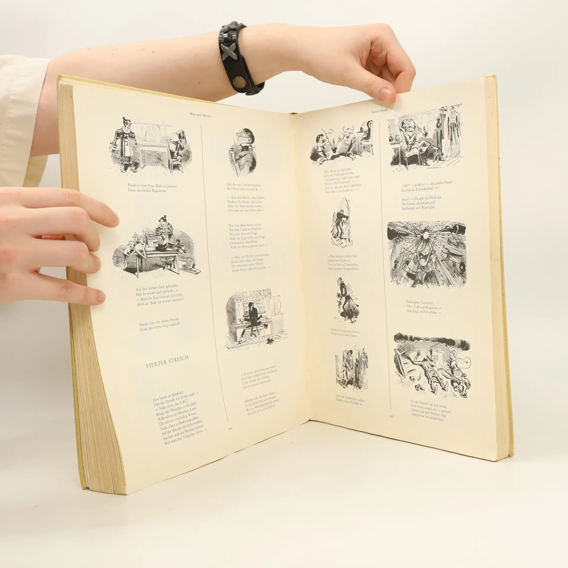 Max und Moritz · Die kühne Müllerstochter Hans Huckebein der Unglücksrabe · Das Bad am Samstagabend Der Schreihals · Das Pusterohr · Die Prise · Fipps der Affe Der Fuchs · Die Drachen · Plisch und Plum Der kleine Pepi mit der neuen Hose Die beiden Enten und der Frosch · Die Fliege Der Bauer und der Windmüller · Das Rabennest Der Lohn einer guten Tat Diogenes und die bösen Buben von Korinth Der Hahnenkampf · Die Rache des Elefanten Der Bauer und sein Schwein · Der hinterlistige Heinrich Die Rutschpartie · Adelens Spaziergang Der unfreiwillige Spazierritt · Zwei Diebe Die Strafe der Faulheit · Der Lohn des Fleisses Der neidische Handwerksbursch Vetter Franz auf dem Esel Der Wurstdieb · Die Brille Die fromme Helene