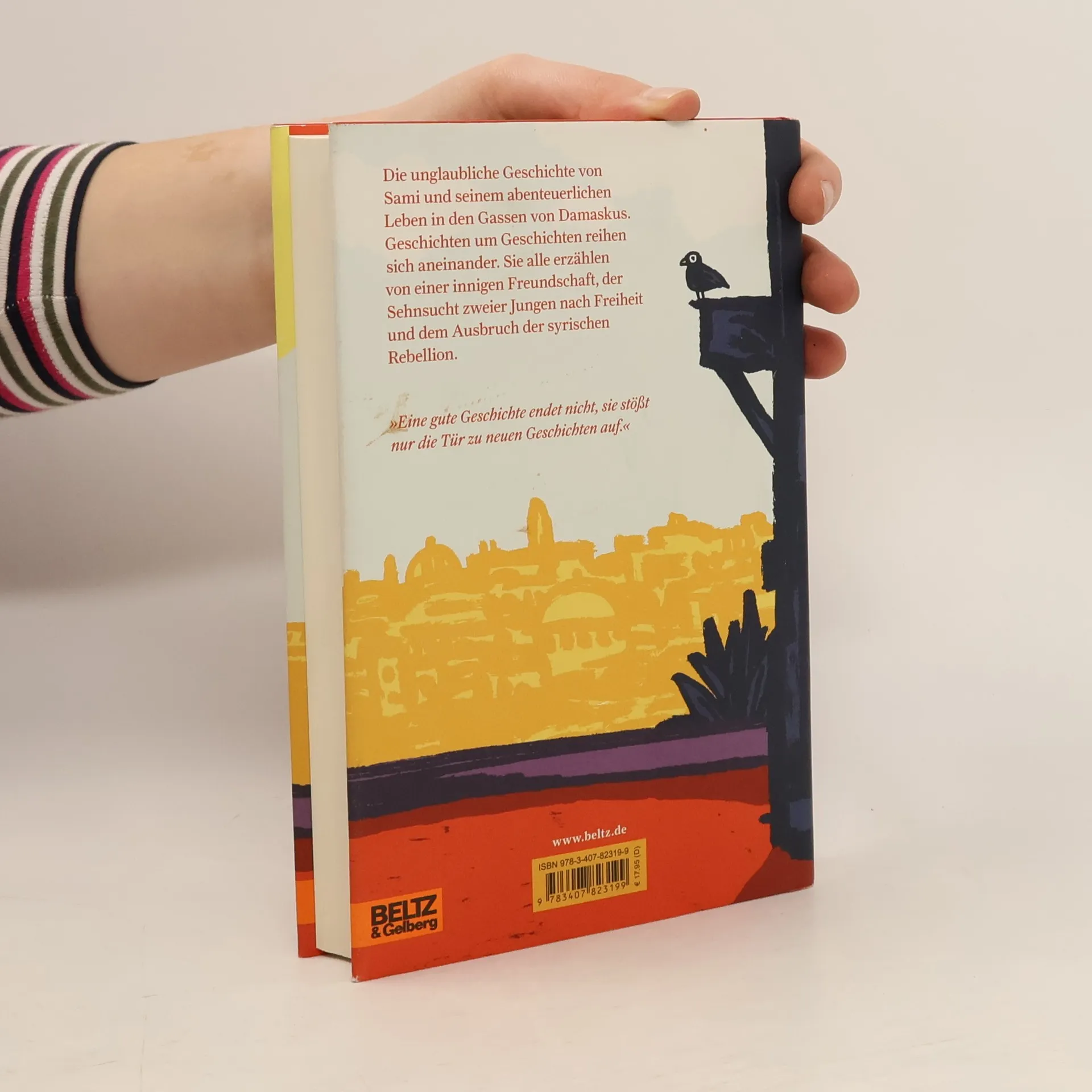 Die unglaubliche Geschichte von Sami und seinem abenteuerlichen Leben in den Gassen von Damaskus. Geschichten um Geschichten reihen sich aneinander. Sie alle erzählen von einer innigen Freundschaft, der Sehnsucht zweier Jungen nach Freiheit und dem Ausbruch der syrischen Rebellion: Sami und Scharif sind unzertrennlich, sie wachsen wie Brüder auf. Nach seiner Flucht aus Syrien erzählt Scharif von ihrer Kindheit in den verwinkelten Gassen von Damaskus, ihren teuflischen Tricks, die Schule zu überstehen, und von ihrem Beschützer, dem weisen Postboten Elias, dem besten Lautenspieler aller Zeiten. Wie Sami sich mutig in jedes Abenteuer stürzt, weil er Unrecht nicht erträgt, und für seine Liebe Josephine sein Leben aufs Spiel setzt. Und wie er sich im Laufe der Jahre so viele Narben holt, die jede wieder ihre eigene Geschichte hat. Bald passieren Dinge, die ihnen die Augen öffnen. Als der Widerstand gegen den Diktator wächst und der Aufstand in Daraa ausbricht, müssen die Freunde abtauchen. Seitdem hat sich die Spur von Sami verloren …