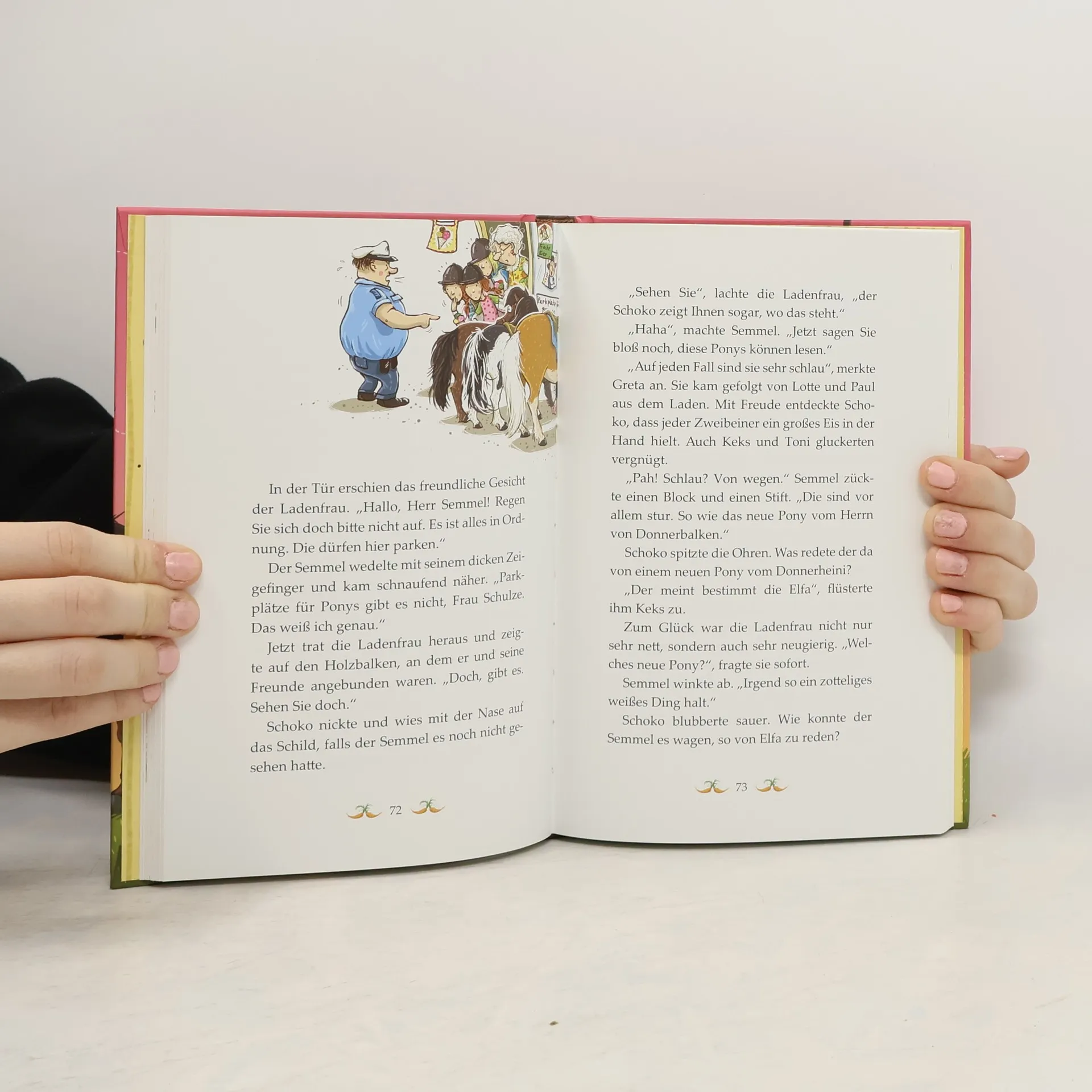 Wer ist denn DAS? Schoko traut seinen Augen kaum. Ausgerechnet auf dem Gestüt Donnerbalken ist ein neues Pony eingezogen. Oder genauer gesagt ein ziemlich nettes Ponymädchen … Elfa heißt sie und kommt von ziemlich weit her. Komisch nur, dass es Schoko plötzlich gar nicht gut geht. Er fühlt sich ziemlich wackelig auf den Hufen und sein Ponybauch grummelt ganz merkwürdig – er wird doch nicht etwa krank sein?