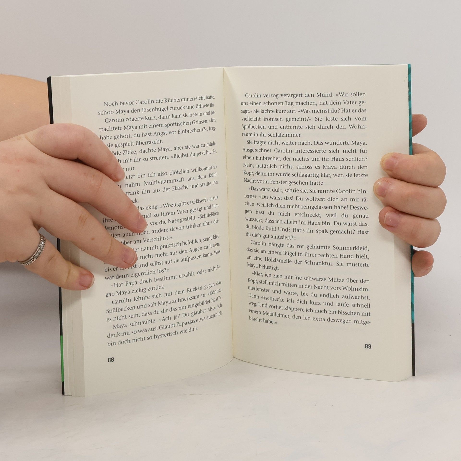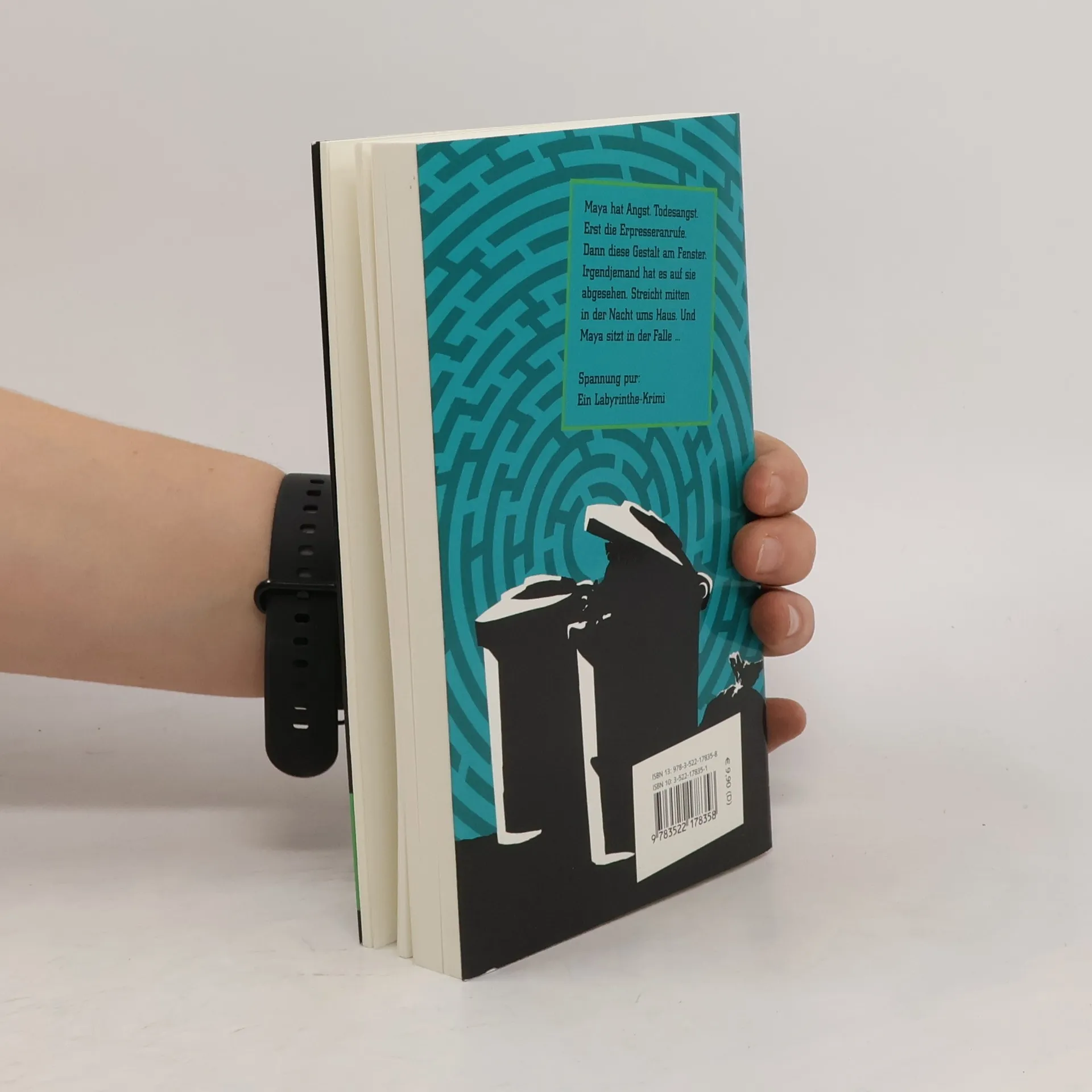 Spannung pur! Maya ist außer sich. Ihr Vater wird erpresst. Und nicht nur das. Er fürchtet um ihr Leben. Deshalb soll sie mit Carolin, der Freundin ihres Vaters, verreisen. Ins Ferienhaus nach Spanien, damit sie in Sicherheit sind. Doch zu Mayas Entsetzen ist das Ferienhaus alles andere als sicher. Als sie mit Carolin vom Strand zurückkommt, liegen Zigarettenstummel im Spülbecken. Dabei rauchen die beiden nicht. Außerdem hat jemand Carolins Kleid in Mayas Zimmer und Mayas T-Shirt in Carolins Zimmer gelegt. Panisch verriegeln Maya und Carolin sämtliche Türen. Das Ferienhaus wird zur Falle. Reihe „Labyrinthe-Krimis“. Ab 13 Jahren