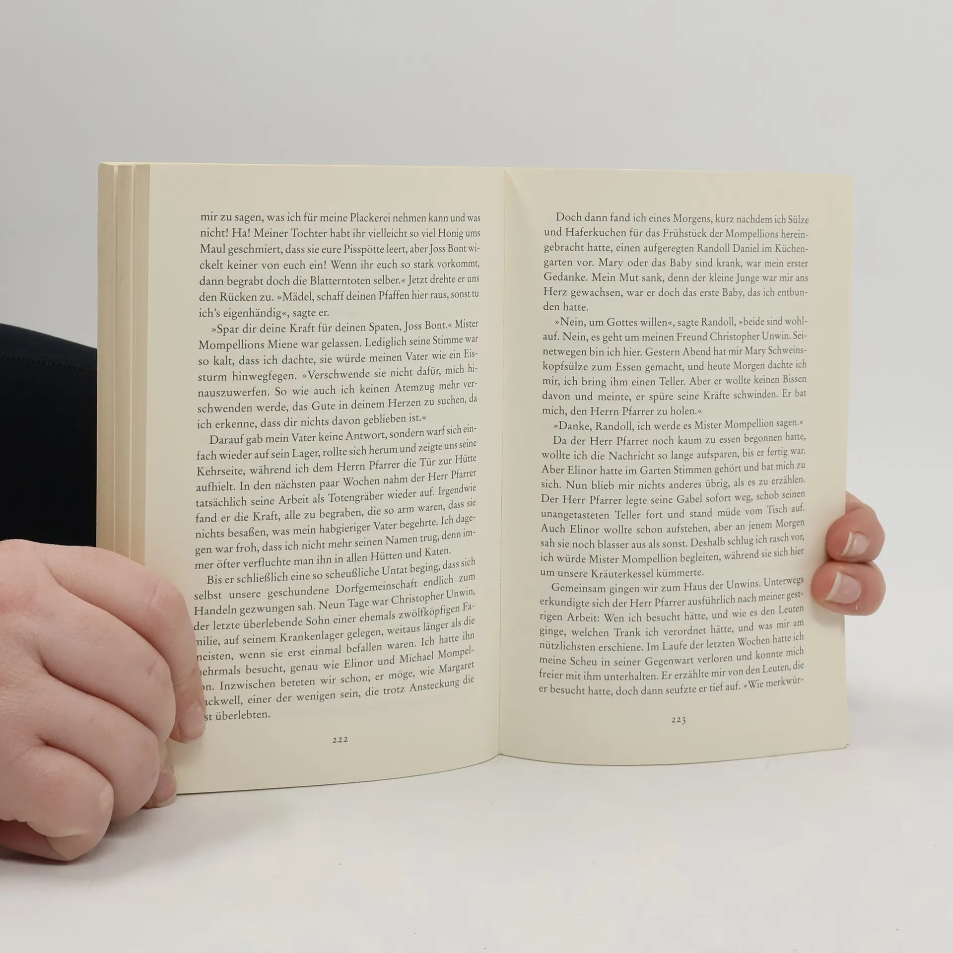 Eine Frau gegen den Schwarzen Tod. Als in einem kleinen Dorf im Norden Englands die Pest ausbricht, übernehmen Angst, Hysterie und Hexenwahn die Herrschaft. Der Schwarze Tod wütet unerbittlich. Die Dorfbewohner haben dem Pfarrer gelobt, den Ort nicht zu verlassen, ehe nicht die Seuche besiegt ist. Mehr als einmal sind sie kurz davor, einander gegenseitig zu meucheln. Die junge Witwe Anna Frith beweist in dieser schlimmen Zeit Mut, sie schenkt Leben und findet Liebe und privates Glück. Eines Tages hat das Grauen ein Ende. Aber Anna Frith steht die schwerste Prüfung noch bevor ... Geraldine Brooks, mehrfach ausgezeichnete amerikanische Journalistin und Sachbuchautorin, wurde zu ihrem ersten Roman durch das Hinweisschild auf ein englisches „Pestdorf“ angeregt. Dort hatten sich Menschen bei Ausbruch der Pest im 17. Jahrhundert selbst in Quarantäne begeben, um das Ausbreiten der Seuche zu verhindern. An ihren Mut und ihre Verzweiflung erinnert bis heute im Peak District ein kleines Museum.