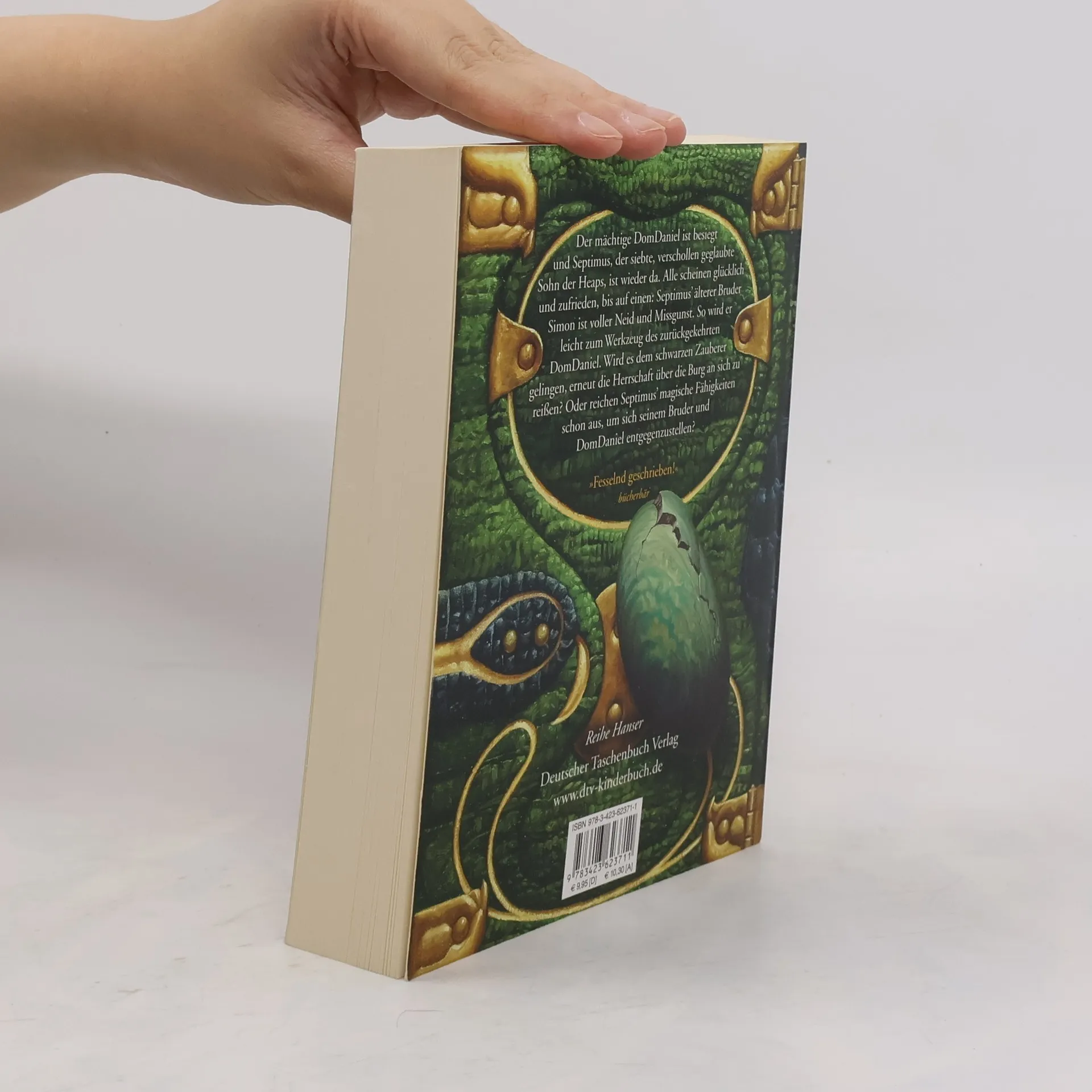 Die Schwarze Macht ist zurück Der mächtige DomDaniel ist besiegt und Septimus, der siebte, verschollen geglaubte Sohn der Heaps, ist wieder da! Bei der Zauberin Marcia Overstrand lernt er, seine magischen Fähigkeiten zu entwickeln. Jenna, die Pflegetochter der Heaps, bereitet sich auf ihre Aufgaben als Königin vor. Alle scheinen zufrieden und glücklich. Bis auf einen: Septimus' älterer Bruder Simon neidet seinem Bruder die Ausbildung. Wütend wendet er sich von seiner Familie ab und wird zum Werkzeug des zurückgekehrten DomDaniel...