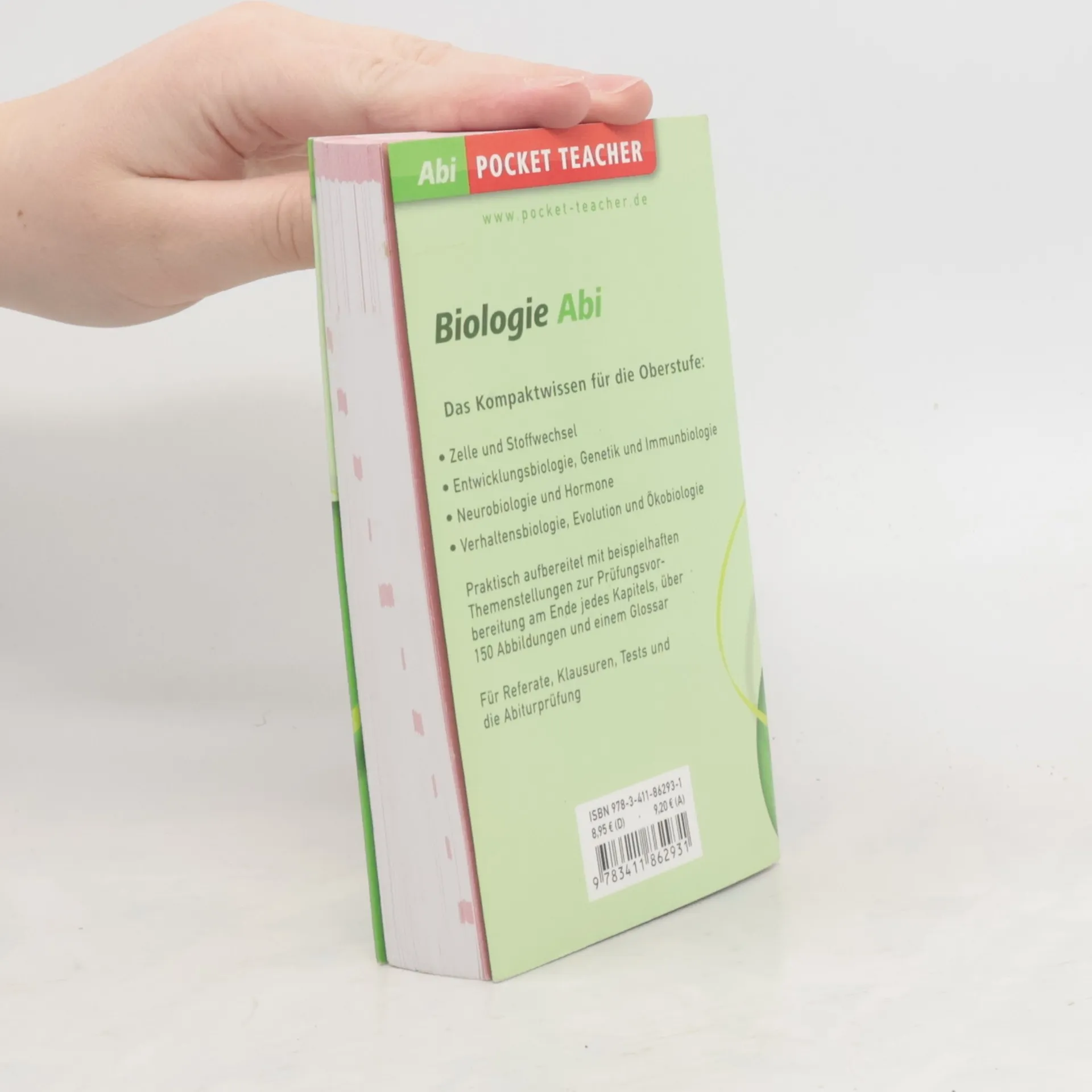 Die erfolgreichen „Pocket Teacher Abi“ fassen alle lehrplanwichtigen Inhalte der Oberstufe kompakt und leicht verständlich zusammen. Der Band „Biologie“ behandelt das komplette Biologie-Basiswissen für die Oberstufe: Evolution, Stoffwechsel und Zellbiologie. Alle Gesetzmäßigkeiten sind knapp und verständlich erklärt. Über 150 Abbildungen veranschaulichen komplexe Zusammenhänge und Phänomene. Beispiele für Prüfungsthemen zeigen, worauf es beim Lernen ankommt. „Pocket Teacher Abi“ sind die idealen Begleiter im Pocket-Format für Schüler der Oberstufe und helfen zuverlässig bei der Vorbereitung auf Klausuren, Tests und Referate sowie fürs Abitur. Der Lernstoff ist optimal gegliedert und leserfreundlich gestaltet. Zahlreiche Beispiele und Abbildungen stellen auch komplexe Zusammenhänge anschaulich dar. Ob Grundkurs, Leistungskurs oder direkte Abiturvorbereitung – hier profitiert jeder!