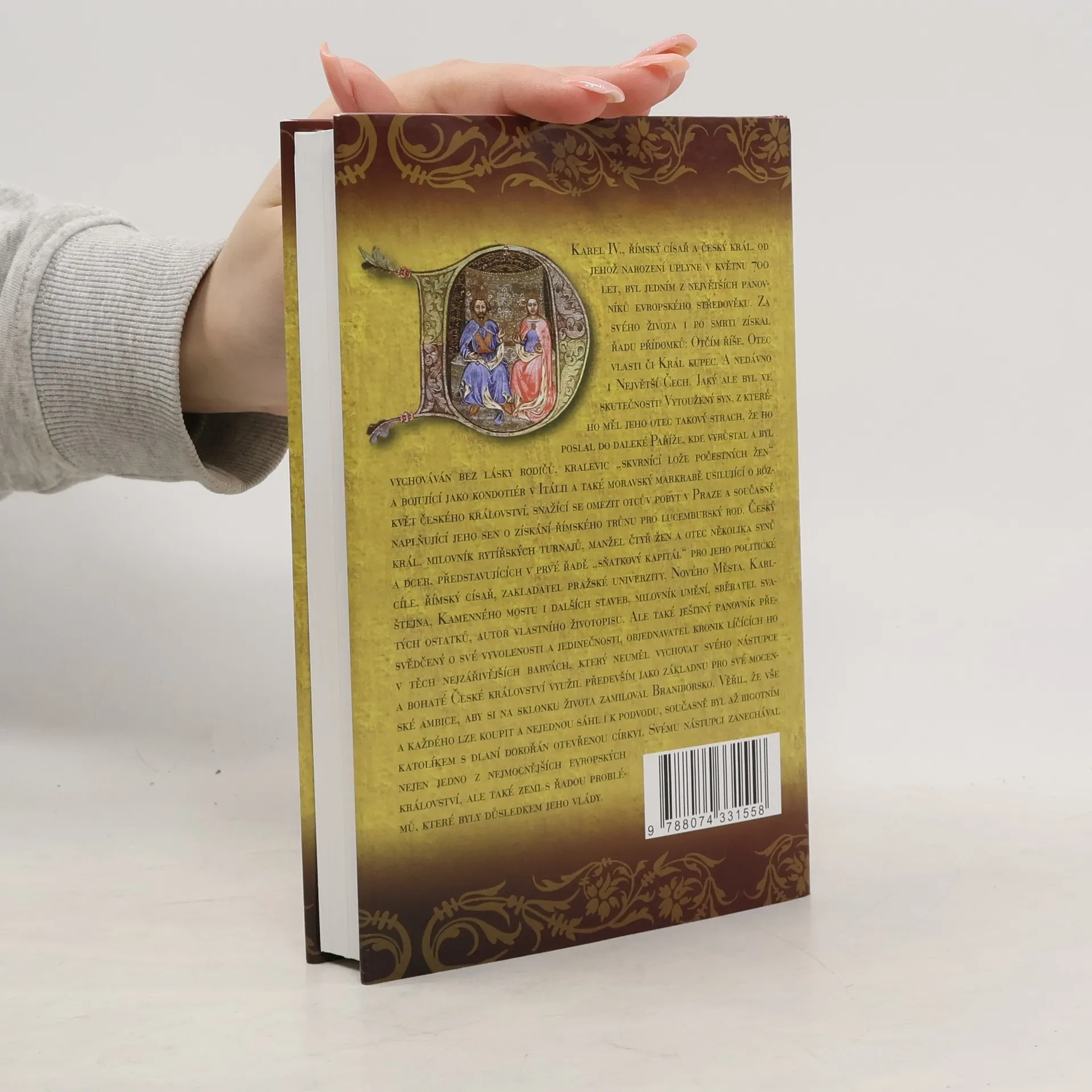 Karel IV., římský císař a český král, oslaví v květnu 700 let od narození. Byl jedním z nejvýznamnějších panovníků středověké Evropy, známým pod různými přídomky jako Otčím říše či Otec vlasti. Jaký však byl ve skutečnosti? Jako vytoužený syn byl poslán do Paříže, kde vyrůstal bez rodičovské lásky. Stal se kralevicem, který se účastnil bojů v Itálii, a moravským markrabětem, usilujícím o rozkvět českého království. Byl českým králem, milovníkem rytířských turnajů, manželem čtyř žen a otcem několika dětí, které sloužily jeho politickým cílům. Jako římský císař založil pražskou univerzitu, Nové Město, Karlštejn a Kamenný most. Byl vášnivým sběratelem umění a svatých ostatků, autorem vlastního životopisu, ale také ješitným panovníkem, který se považoval za výjimečného. Jeho vláda byla poznamenána ambicemi, podvody a bigotností, přičemž církev byla pro něj důležitým spojencem. Svému nástupci zanechal mocné království, ale také řadu problémů, které vyplývaly z jeho vlády.