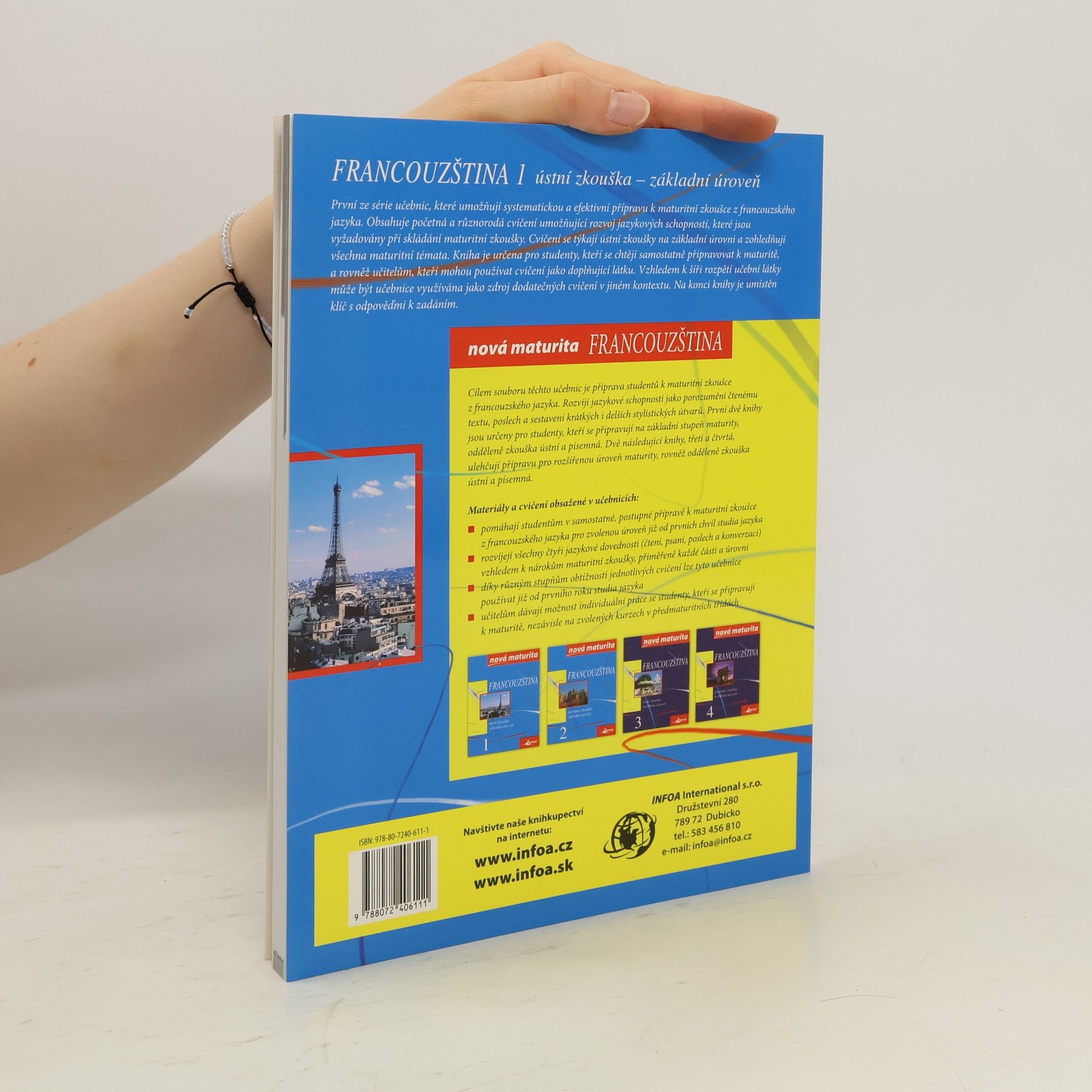 Edice Nová maturita - francouzština se skládá ze 4 učebnic. První z těchto učebnic umožňuje systematickou a efektivní přípravu na základní stupeň maturity. Obsahuje početná a různorodá cvičení, je vhodná k samostatné přípravě, ale i pro učitele jako doplňkový materiál. V závěru učebnic je klíč. (Bližší informace k souboru: První dvě knihy jsou určeny pro studenty připravující se na základní stupeň maturity (A1 až A2+). Knihy třetí a čtvrtá jsou určeny k přípravě na rozšířenou úroveň maturity (B1).