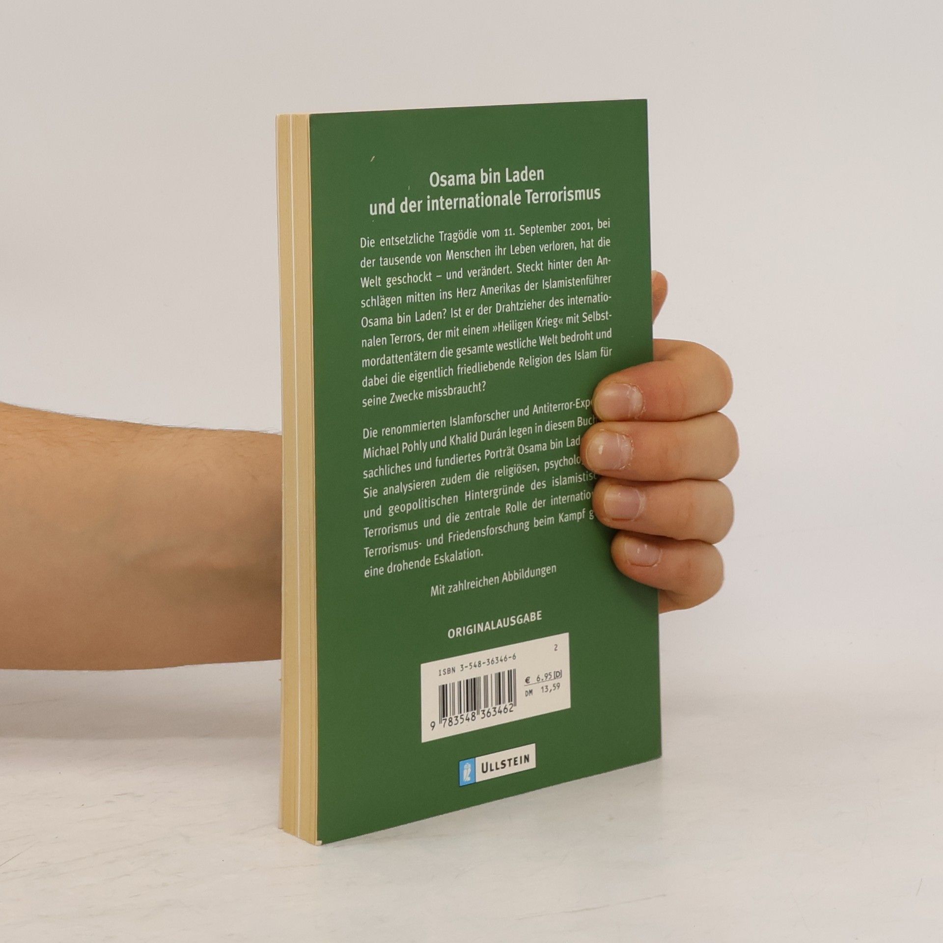 Kurzbeschreibung Die entsetzliche Tragödie vom 11. September 2001, bei der tausende von Menschen ihr Leben verloren, hat die Welt geschockt - und verändert. Steckt hinter den Anschlägen mitten ins Herz Amerikas der Islamistenführer Osama bin Laden? Ist er der Drahtzieher des internationalen Terrors, der mit einem 'Heiligen Krieg' mit Selbstmordattentätern die gesamte westliche Welt bedroht und dabei die eigentlich friedliebende Religion des Islam für seine Zwecke missbraucht? Die renommierten Islamforscher und Antiterror-Experten Michael Pohly und Khalid Duran legen in diesem Buch ein sachliches und fundiertes Porträt Osama bin Ladens vor. Sie analysieren zudem die religiösen, psychologischen und geopolitischen Hintergründe des islamistischen Terrorismus und die zentrale Rolle der internationalen Terrorismus- und Friedensforschung beim Kampf gegen eine drohende Eskalation.