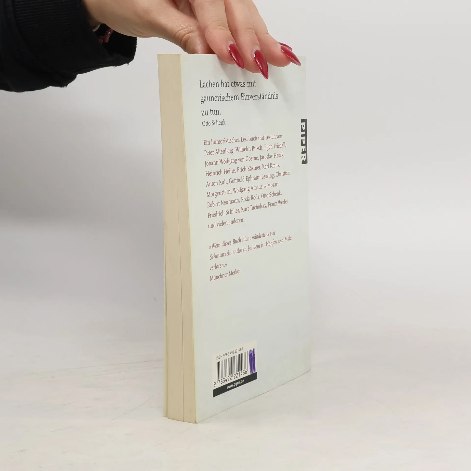 Erst als Vortragsprogramm, dann als Video-Kassette, schließlich als Buch: Otto Schenks »Sachen zum Lachen« sind in jeder Form ein großer Erfolg. Das liegt – neben dem grandiosen Vortrag natürlich – vor allem auch in der Qualität der ausgewählten Texte, die ausnahmslos zu den Meisterwerken der humoristischen Literatur, speziell der wienerischen, gehören. Aber auch die großen Klassiker Goethe und Schiller sind hier vertreten sowie die Spötter Heinrich Heine, Wilhelm Busch und Kurt Tucholsky.