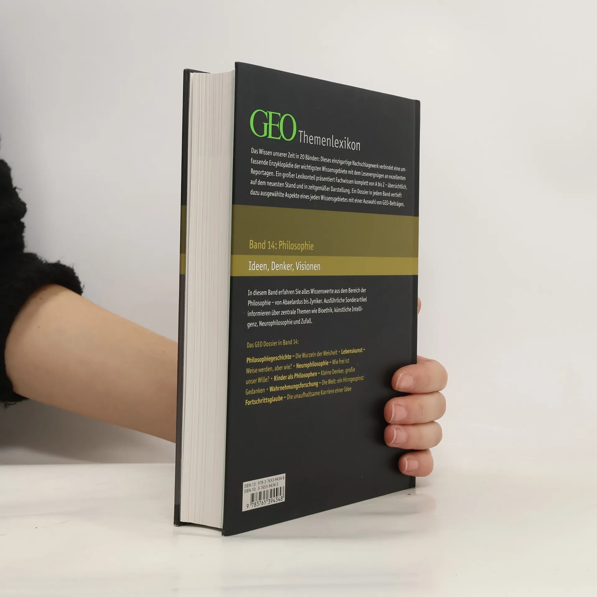 Das Wissen unserer Zeit in 20 Themenbänden: Dieses einzigartige und preisgünstige Nachschlagewerk ist eine Kooperation des Brockhaus-Verlages mit dem Reportagemagazin GEO und verbindet eine umfassende Enzyklopädie der wichtigsten Wissensgebiete mit dem Lesevergnügen an exzellenten Reportagen im GEO Dossier, das den alphabetischen Stichwortbestand eines jeden Bandes ergänzt. Band 14 beschäftigt sich mit dem Themenbereich 'Philosophie'.