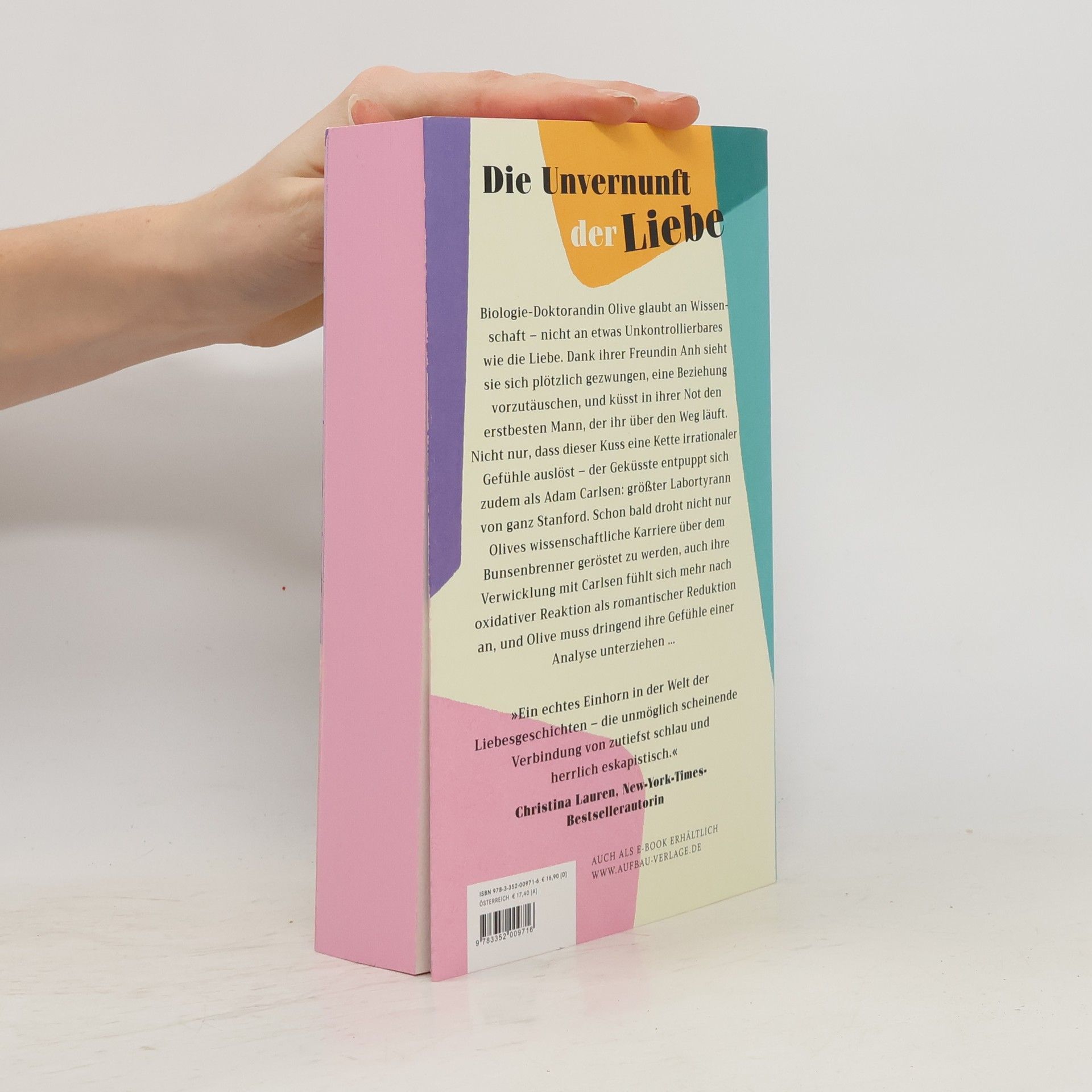 Die Unvernunft der Liebe Biologie-Doktorandin Olive glaubt an Wissenschaft – nicht an etwas Unkontrollierbares wie die Liebe. Dank ihrer Freundin Anh sieht sie sich plötzlich gezwungen, eine Beziehung vorzutäuschen, und küsst in ihrer Not den erstbesten Mann, der ihr über den Weg läuft. Nicht nur, dass dieser Kuss eine Kette irrationaler Gefühle auslöst – der Geküsste entpuppt sich zudem als Adam Carlsen: größter Labortyrann von ganz Stanford. Schon bald droht nicht nur Olives wissenschaftliche Karriere über dem Bunsenbrenner geröstet zu werden, auch ihre Verwicklung mit Carlsen fühlt sich mehr nach oxidativer Reaktion als romantischer Reduktion an, und Olive muss dringend ihre Gefühle einer Analyse unterziehen … “Ein echtes Einhorn in der Welt der Liebesgeschichten – die unmöglich scheinende Verbindung von zutiefst schlau und herrlich eskapistisch.” Christina Lauren, New-York-Times-Bestsellerautorin