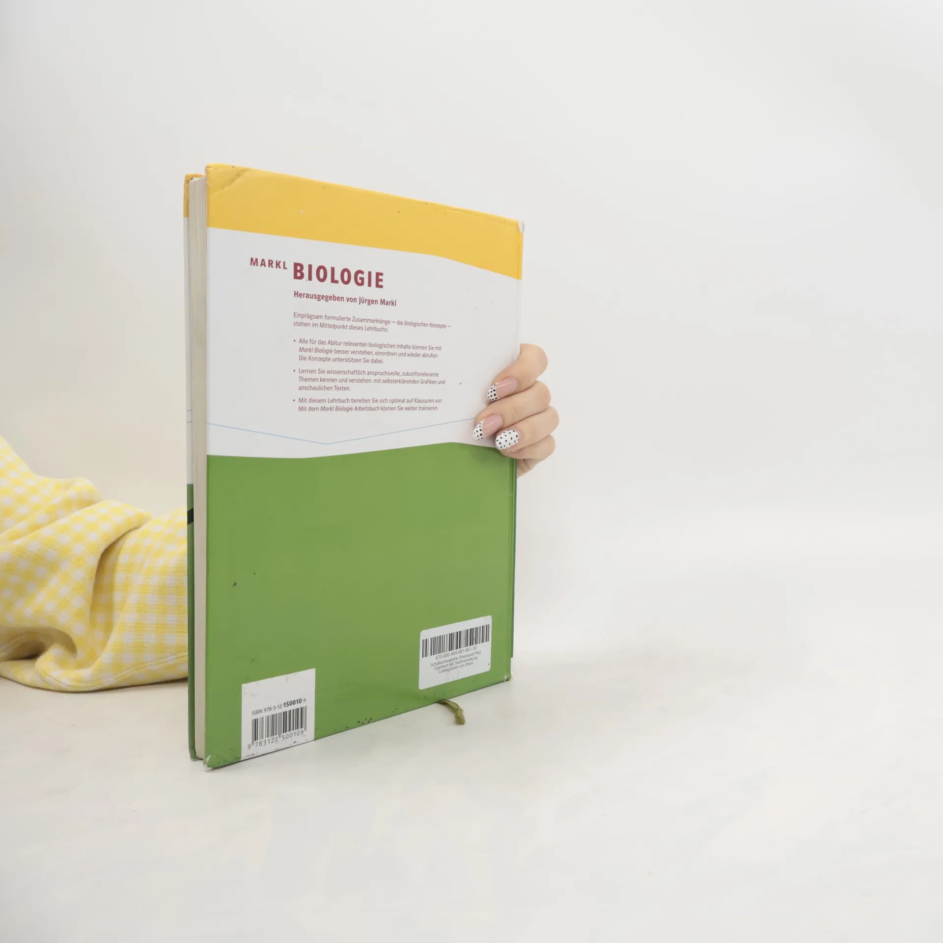 Markl Biologie Schulbuch Das Lehrwerk vermittelt Ihren Schülern biologisches Fachwissen anhand von Konzepten und konzeptbezogenen Aufgaben. Das Lernen mit Markl Biologie ist motivierend. Bestimmt werden Ihre Schüler die fachwissenschaftlich aktuellen und lebendigen Texte gerne lesen: Sie zeigen, dass Biologie Lebenswissenschaft ist und eine Bedeutung für die Zukunft hat. Erstklassige Grafiken visualisieren Fachwissen. Die Grafiken in Markl Biologie sind sehr ästhetisch und in hohem Maße sprechend : Mit ihrer Hilfe informieren und orientieren sich die Schüler und können Bekanntes mit Neuem verknüpfen. Ihre Schüler lernen alle prüfungsrelevanten Inhalte. Wer die biologischen Konzepte verstanden hat, ist auf Klausuren gut vorbereitet: Mit vielen konzeptbezogenen Aufgaben (inklusive Lösungen zur Selbstkontrolle), einem Glossar und dem integrierten Online-Angebot unterstützt Markl Biologie beim selbstständigen Lernen. Das System Markl Biologie macht Schüler kompetent. Mit Markl Biologie erwerben Schüler fundiertes Wissen so, dass sie es behalten und anwenden können: Zur Ergänzung des Schulbuchs bietet dieses System ein optimal abgestimmtes Arbeitsbuch – und für Sie das Lehrerbuch.