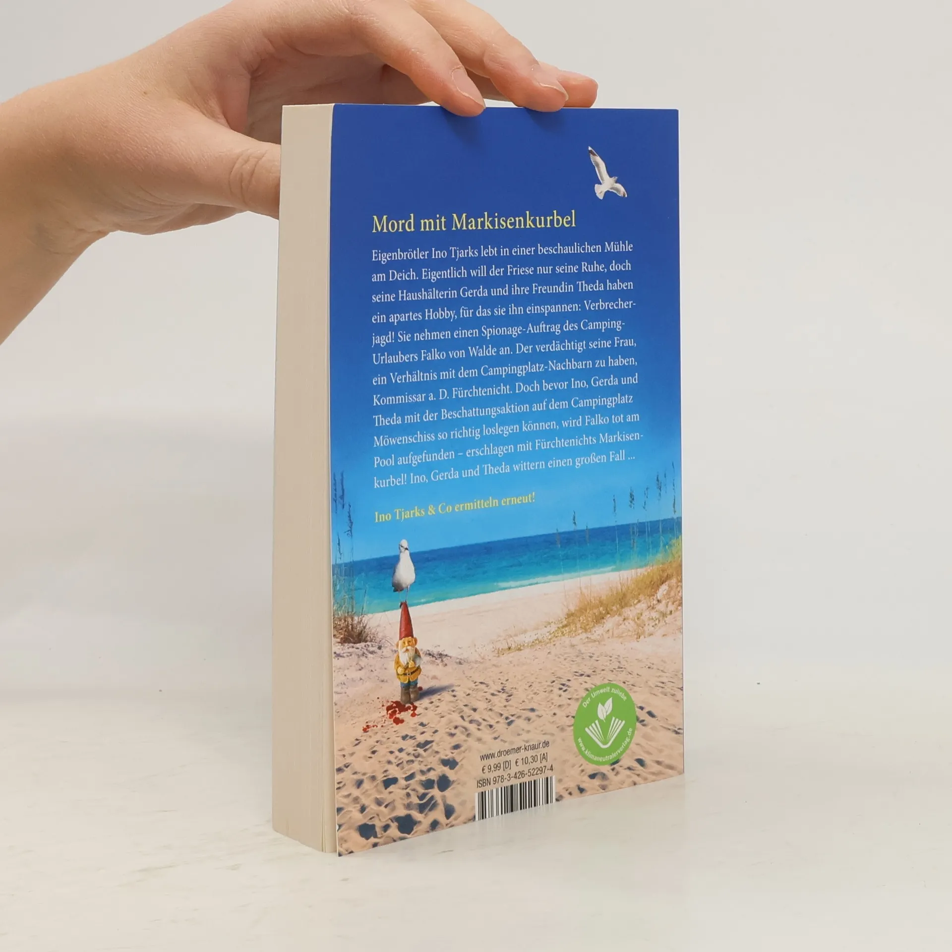 Humorvolle Urlaubslektüre für Nordsee-Fans: Im zweiten Teil der Küstenkrimi-Reihe an der friesischen Nordsee-Küste müssen der liebenswerte Eigenbrötler Ino Tjarks, seine Haushälterin Gerda Janßen und die befreundete Bäckerin Theda Graalfs einen Mörder auf dem Campingplatz enttarnen. Ino, der lange keine so aufregenden Zeiten hatte wie als Mordverdächtiger, nimmt einen Spionage-Auftrag des arroganten Camping-Urlaubers Falko von Walde an, der seine Frau verdächtigt, ein Verhältnis mit dem neuen Nachbarn, Kommissar a. D. Traugott Fürchtenicht, zu haben. Doch bevor Ino und Gerda mit ihrer Überwachung auf dem Campingplatz Möwenschiss beginnen, wird Falko tot am Pool aufgefunden – erschlagen mit der Markisenkurbel von Traugott. Der Krimi spielt auf dem fiktiven Campingplatz Möwenschiss bei Schillig an der friesischen Nordsee. Inos und Gerda's erstes Abenteuer erlebten die Leser im ersten Teil der Reihe. Ein heiterer Küstenkrimi für den Nordsee-Urlaub und alle Nordsee-Fans!