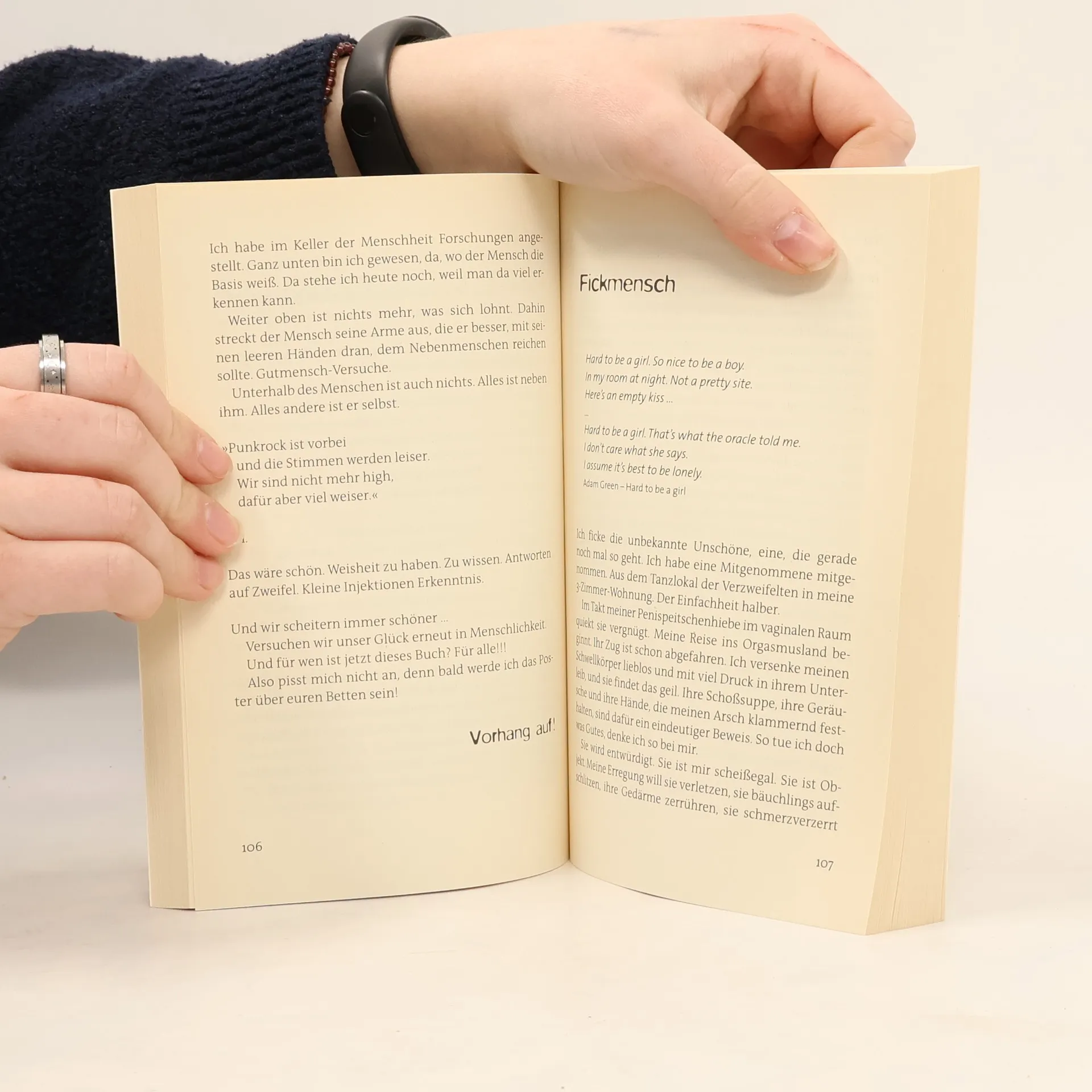 „Guten Tag, die Welt liegt in Trümmern.“ So lautet die Begrüßung des Autors, bevor er einen hinabreißt in die Abgründe der Welt. Mit seinem literarischen Skalpell zelebriert er ein Massaker des Lebens, das fasziniert, um gleichzeitig abzustoßen. Wie in Tarantinos „Pulp Fiction“ reihen sich scheinbar zufällige Ereignisse aneinander, um später wieder aufgenommen zu werden. So spinnt sich ein roter Faden – und bald ist klar, dass Blut den Faden so rot schimmern lässt. Mit einer exklusiven Zusatzstory