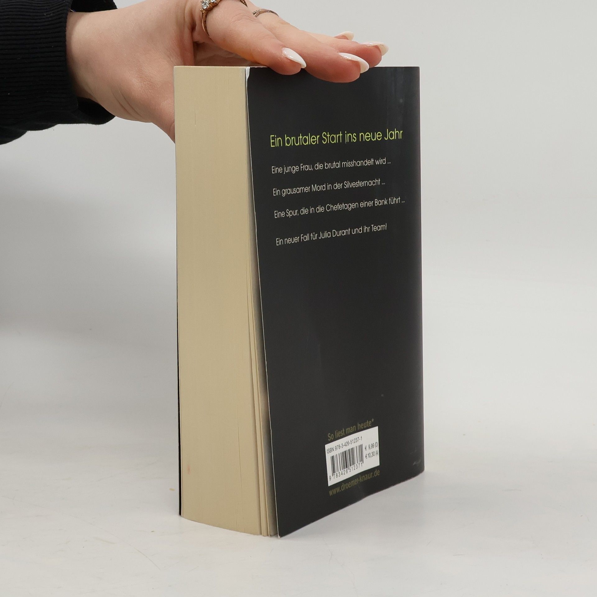 Frankfurt, Neujahr 2011: Während man überall noch im Silvesterrausch ist, passiert, unbemerkt von allen, ein grausamer Mord: Eine junge Frau wird verprügelt, vergewaltigt, erdrosselt und schließlich in einem Müllcontainer unweit des Bankenviertels entsorgt. Erste Spuren werden sichergestellt, sogar DNA gefunden, die Ermittlungen führen hinauf in die Chefetagen einer renommierten Bank. Der Verdächtige ist stur, verweigert die Aussage und verbirgt sich hinter einer Armada von Anwälten. Schuldig? Da passiert ein zweiter Mord … Eine neue Herausforderung für Julia Durant und ihr Team!