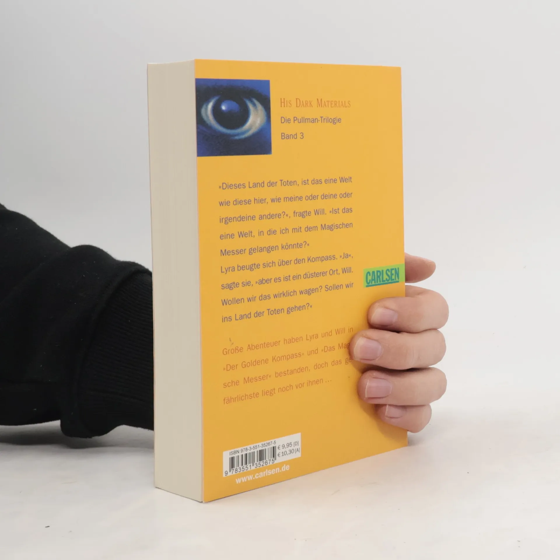 Viele atemberaubende Abenteuer haben Lyra und Will schon bestanden, seit der Goldene Kompass sie zusammenbrachte. Aber ihre gemeinsame Reise ist noch lange nicht zu Ende. Immer deutlicher spürt Lyra, dass eine Antwort auf ihre Fragen nur im Reich der Toten zu finden ist. Gegen alle Widerstände steigen Will und sie in diese schrecklichste aller Welten hinab fest entschlossen, eine alte Schuld zu sühnen und eine Prophezeiung zu erfüllen, von der sie nur eine vage Ahnung haben. Und sie wissen, dass am Ende dieses Weges noch größere Gefahren auf sie warten, denn die Allermächtigsten rüsten sich zur entscheidenden Schlacht zwischen Gut und Böse.