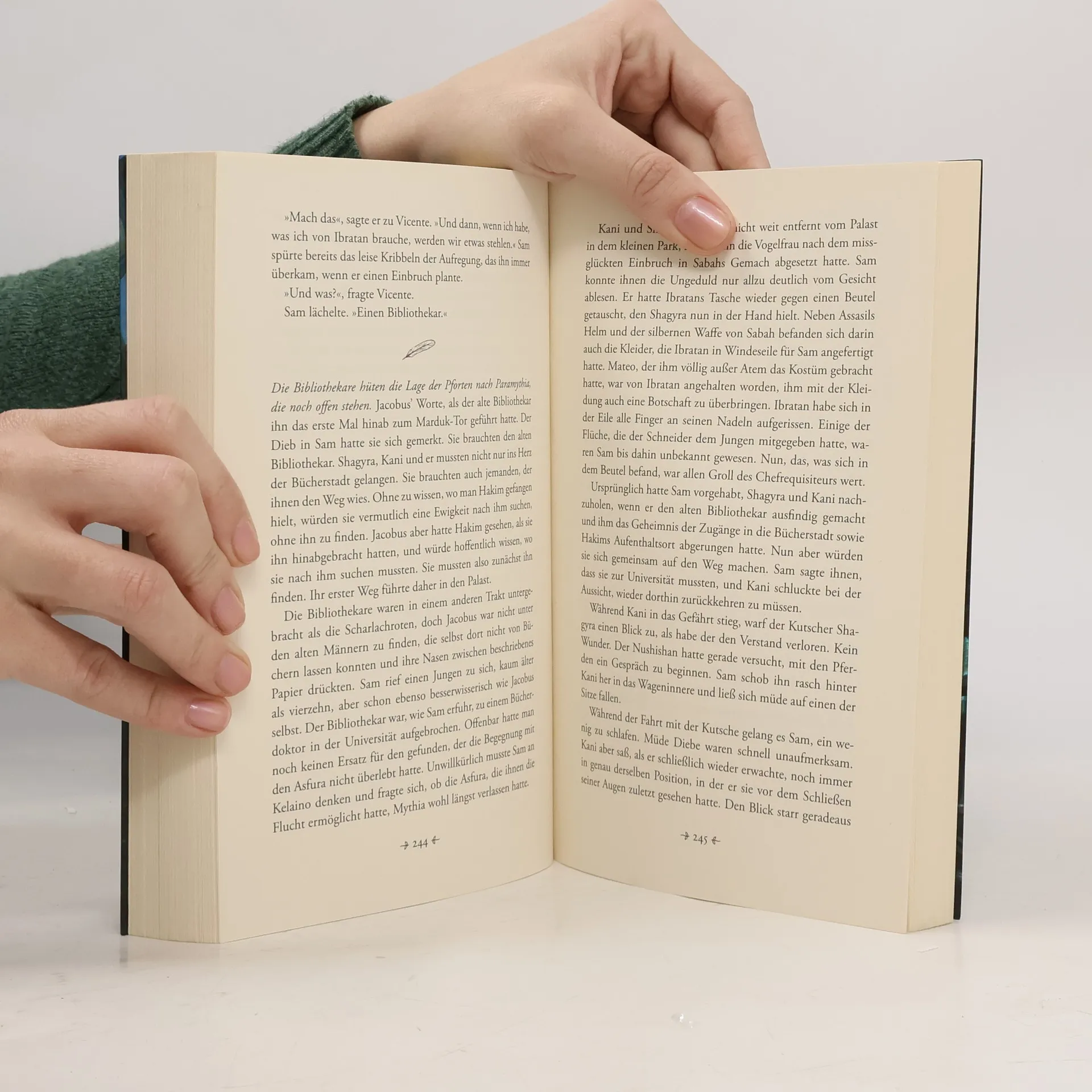 Eine riesige unterirdische Bibliothek, hallende Bücherschluchten, Geheimnisse in jedem Buch. Sam ist ein Dieb - aber mit einer List gelingt es ihm trotzdem, in die Palastwache von Mythia aufgenommen zu werden. Er träumt von einem neuen Leben, von großen Aufgaben. Vielleicht wird er gar als Wache des Weißen Königs eingesetzt? Doch statt des Königs soll er nur alte, staubige Bücher bewachen, in der riesigen Bibliothek unterhalb der Stadt. Wie langweilig! Sam kann nicht mal lesen. Bald jedoch erfährt er am eigenen Leib, dass die hallenden Bücherschluchten ebenso gefährliche wie fantastische Geheimnisse bergen.