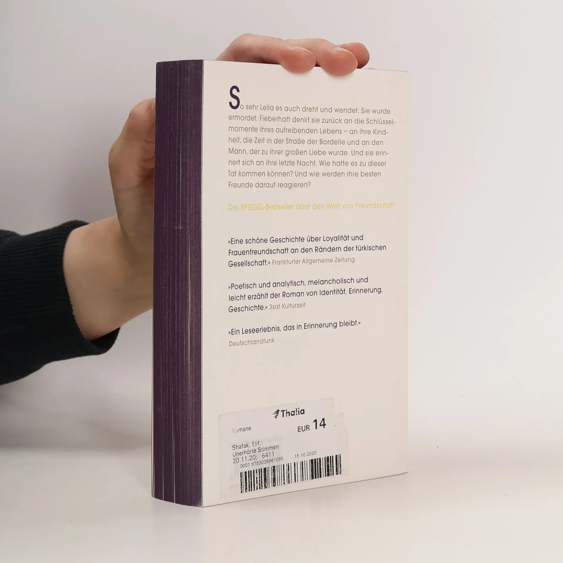 So sehr Leila es auch dreht und wendet: Sie wurde ermordet. Wie konnte es zu dieser Tat kommen? Fieberhaft denkt sie zurück an die Schlüsselmomente ihres aufreibenden Lebens, an den Geschmack von gewürztem Ziegeneintopf aus ihrer Kindheit, an den Gestank der Straße der Bordelle, wo sie arbeitete, und den Geruch von Kardamomkaffee, den sie mit einem jungen Mann teilte, der zu ihrer großen Liebe wurde. Elif Shafak erzählt in ihrem neuen Roman von einer Frau, die am Rand der Gesellschaft Halt sucht, wo die Freundschaften tief ist, aber das Glück flüchtig.