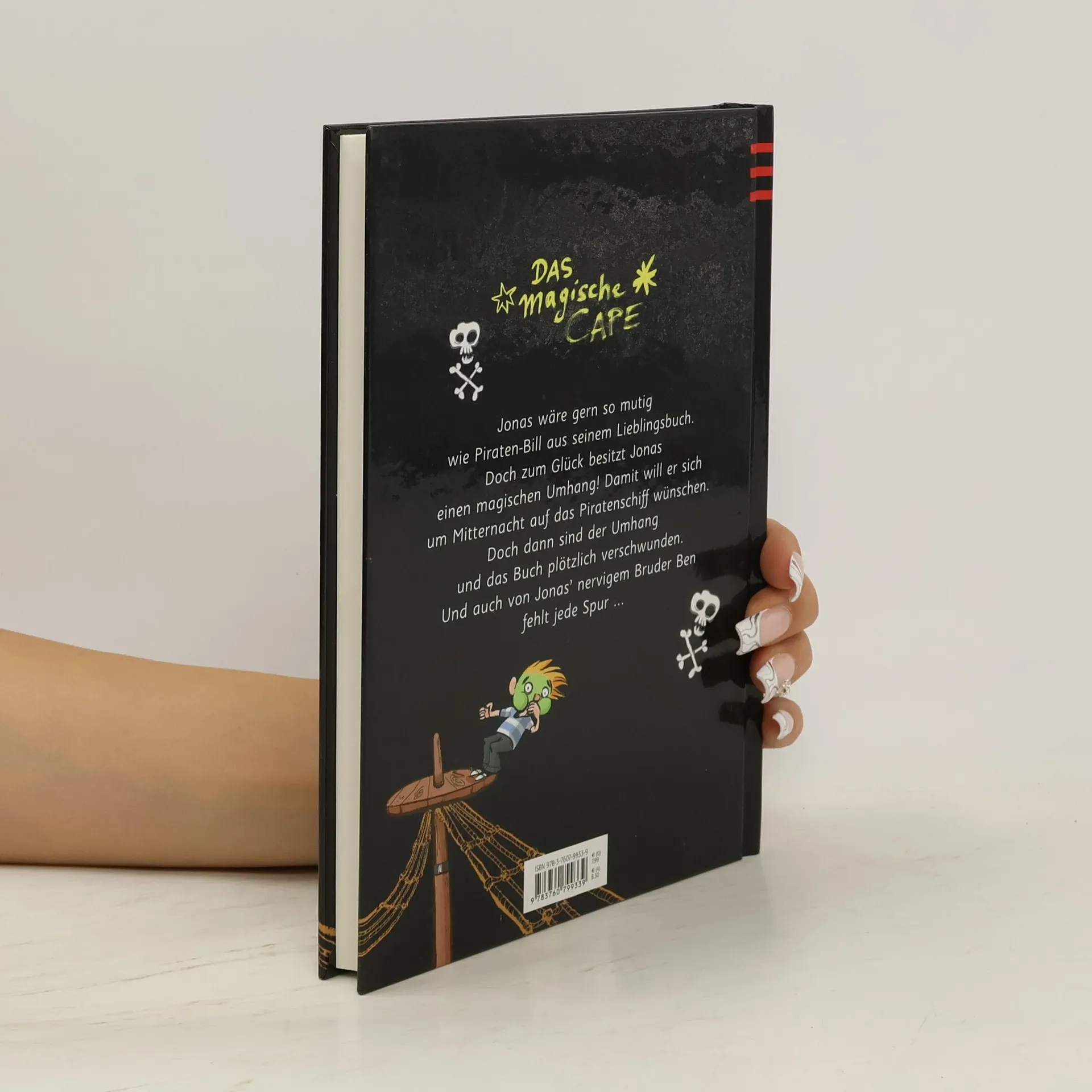 Jonas wäre gern so mutig wie Piraten-Bill aus seinem Lieblingsbuch. Doch zum Glück besitzt Jonas' einen magischen Umhang! Damit will er sich um Mitternacht auf das Piratenschiff wünschen. Doch dann sind der Umhang und das Buch plötzlich verschwunden. Und auch von Jonas' nervigem Bruder Ben fehlt jede Spur.