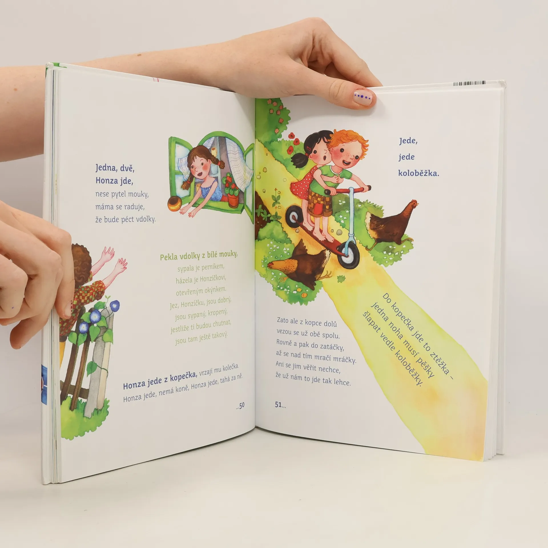 Říkadla a vyprávění z odkazu lidové slovesnosti se v této knize prolínají a doplňují s verši současnými a jsou vybrány tak, aby si je po přečtení dospělým děti dobře zapamatovaly a některé se i naučily předříkávat samy.