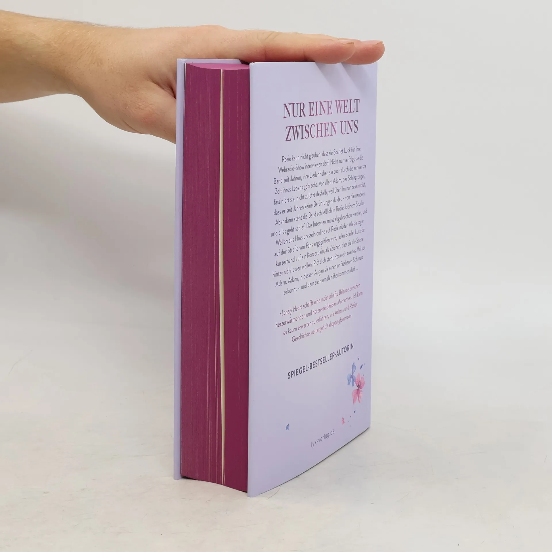 Nur eine Welt zwischen uns Rosie kann nicht glauben, dass sie Scarlet Luck für ihre Webradio-Show interviewen darf. Nicht nur verfolgt sie die Band seit Jahren, ihre Lieder haben sie auch durch die schwerste Zeit ihres Lebens gebracht. Vor allem Adam, der Schlagzeuger, fasziniert sie, nicht zuletzt deshalb, weil über ihn nur bekannt ist, dass er seit Jahren keine Berührungen duldet - von niemandem. Aber dann steht die Band schließlich in Rosies kleinem Studio, und alles geht schief. Das Interview muss abgebrochen werden, und Wellen aus Hass prasseln online auf Rosie nieder. Als sie sogar auf der Straße von Fans angegriffen wird, laden Scarlet Luck sie kurzerhand auf ein Konzert ein, als Zeichen, dass sie die Sache hinter sich lassen wollen. Plötzlich steht Rosie ein zweites Mal vor Adam. Adam, in dessen Augen sie einen unfassbaren Schmerz erkennt - und dem sie niemals näherkommen darf ... „ LONELY HEART schafft eine meisterhafte Balance zwischen herzerwärmenden und herzzerreißenden Momenten. Ich kann es kaum erwarten zu erfahren, wie Adams und Rosies Geschichte weitergeht!“ SHOPPINGFORAMOON Der neue Roman von Platz-1- SPIEGEL -Bestseller-Autorin Mona Kasten