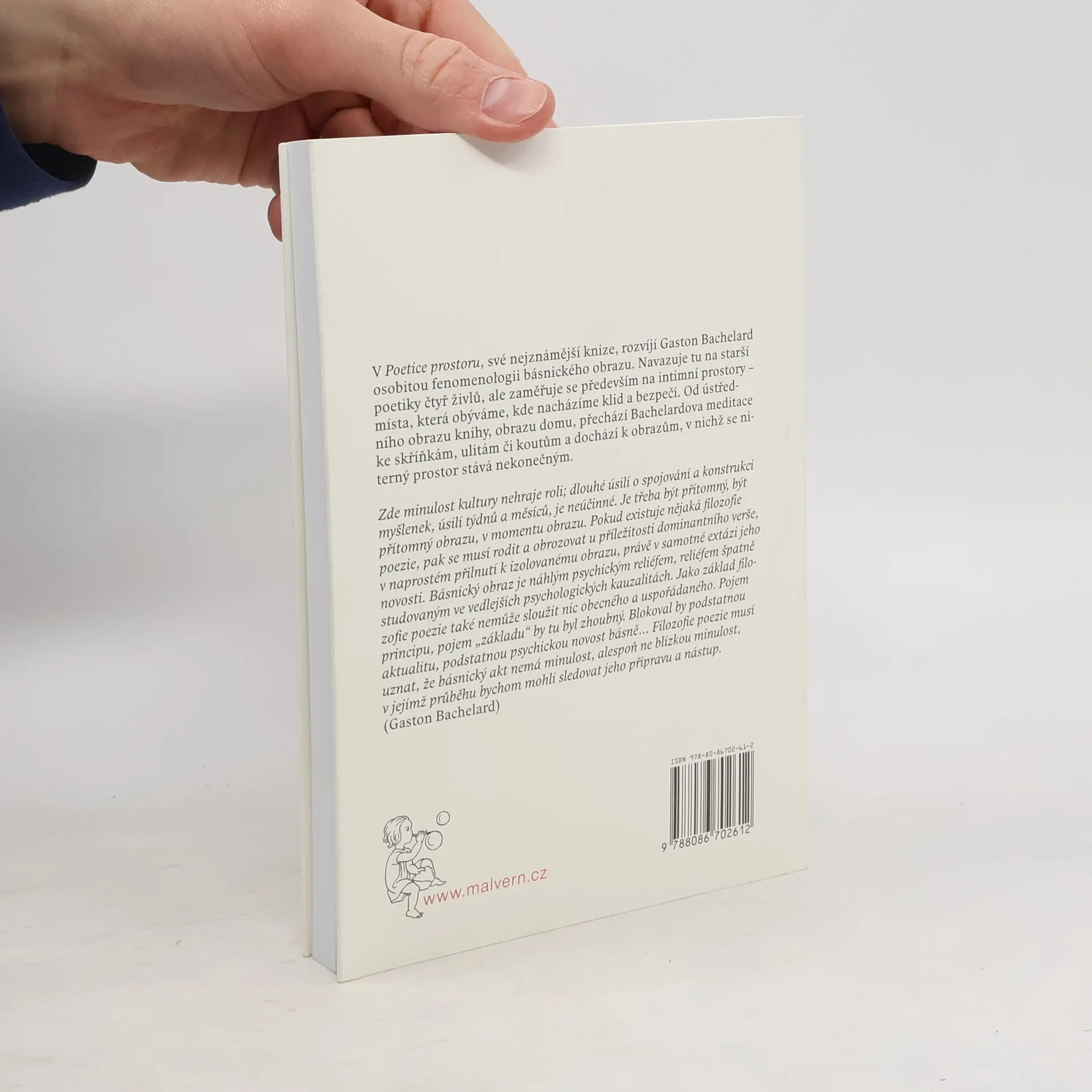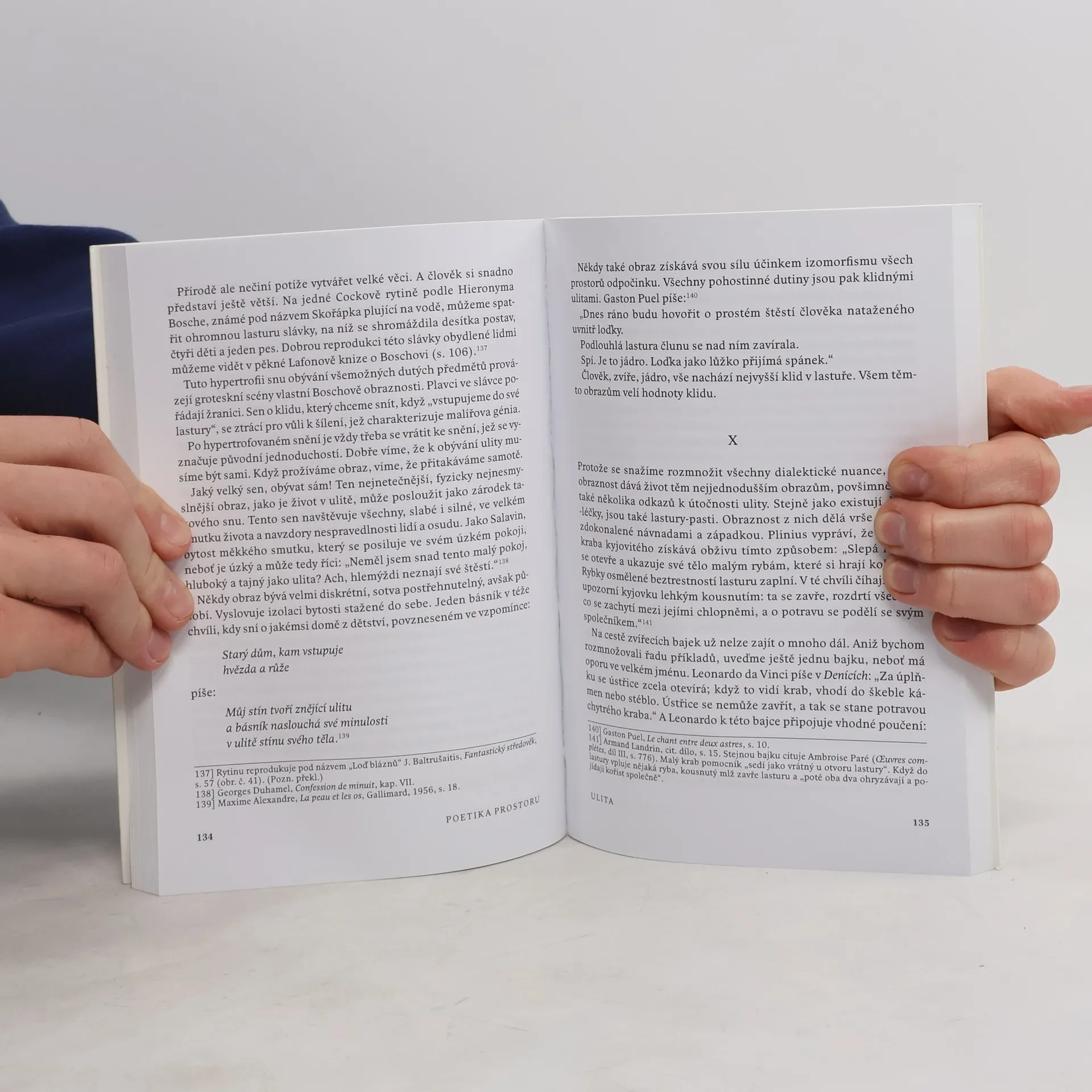 Gaston Bachelard, jeden z nejvýznamnějších francouzských filozofů 20. století, rozvíjí v Poetice prostoru, své nejznámější knize, osobitou fenomenologii básnického obrazu. Navazuje tu na své starší poetiky čtyř živlů, ale zaměřuje se především na intimní prostory – místa, která obýváme, kde nacházíme klid a bezpečí. Od ústředního obrazu knihy, obrazu domu, přechází Bachelardova meditace ke skříňkám, ulitám či koutům a dochází k obrazům, v nichž se niterný prostor stává nekonečným.