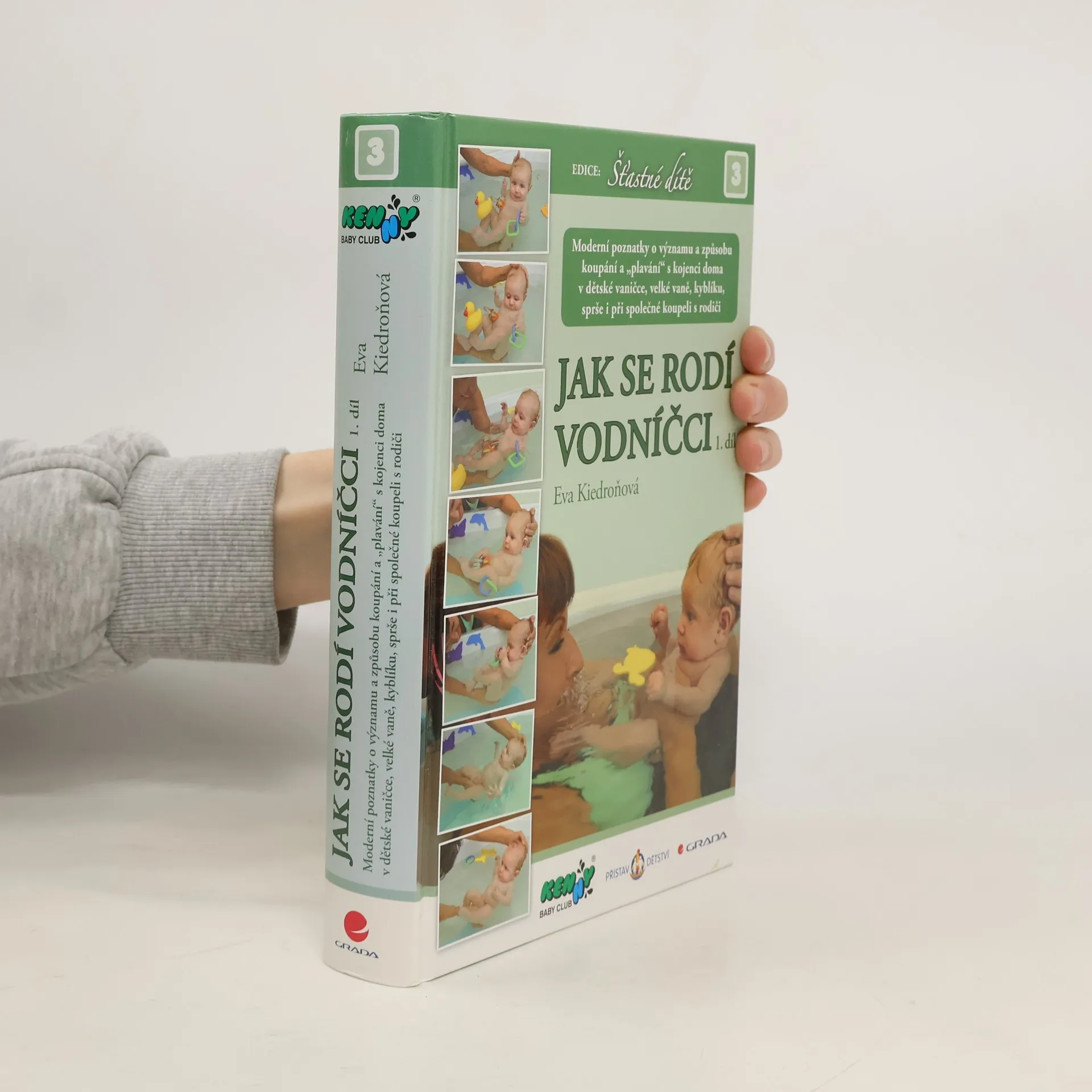 Kniha poskytuje informace, které se týkají koupání novorozenců a malých kojenců. Radí rodičům, zda vůbec nebo jak často mají své dítě koupat, v kterou denní dobu a v které části bytu, zda nejlépe koupat v kyblíku, ve vaně, v dětské vaničce nebo jenom sprchovat. Radí jakou teplotu by měla mít místnost, jakou voda ke koupání a jak dlouho může být dítě ve vodě. Zejména pak, jak nejlépe při koupeli postupovat, v jaké poloze a jakým způsobem by měli dítě mydlit, jakým způsobem by měli ošetřovat genitál, jak pokožku dítěte po koupání nejlépe osušit a ošetřit, jakým způsobem čistit oči, nosík, ouška a pupík. V knize se dozvíte jaké používat pomůcky, hry a písničky nebo co dělat v případě, kdy dítě při koupání pláče.