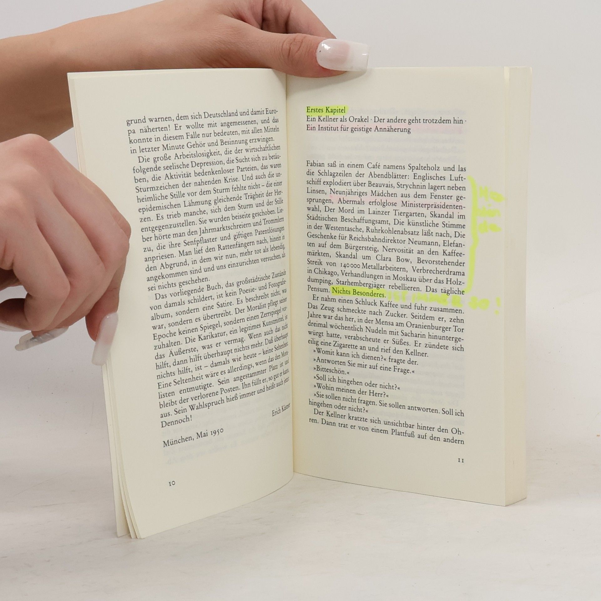 Bissig und schonungslosEine brillante und provokante Großstadtsatire im Berlin der frühen 30er Jahre. »Satirischer Roman von Erich Kästner, erschienen 1931. - Das Werk gilt als eine der brillantesten Satiren auf deutsche, insbesondere Berliner Zustände am Ende der zwanziger Jahre und während der großen Wirtschaftskrise um 1930. Titelheld ist der zweiunddreißigjährige Germanist Dr. Jakob Fabian, bisher Adressenschreiber, nun Reklametexter für eine Zigarettenfirma, ein »zarter Ironiker«, der »auf den Sieg der Anständigkeit wartet«, nicht gerade lebenstüchtig ist und von den Menschen immer wieder übervorteilt wird.«