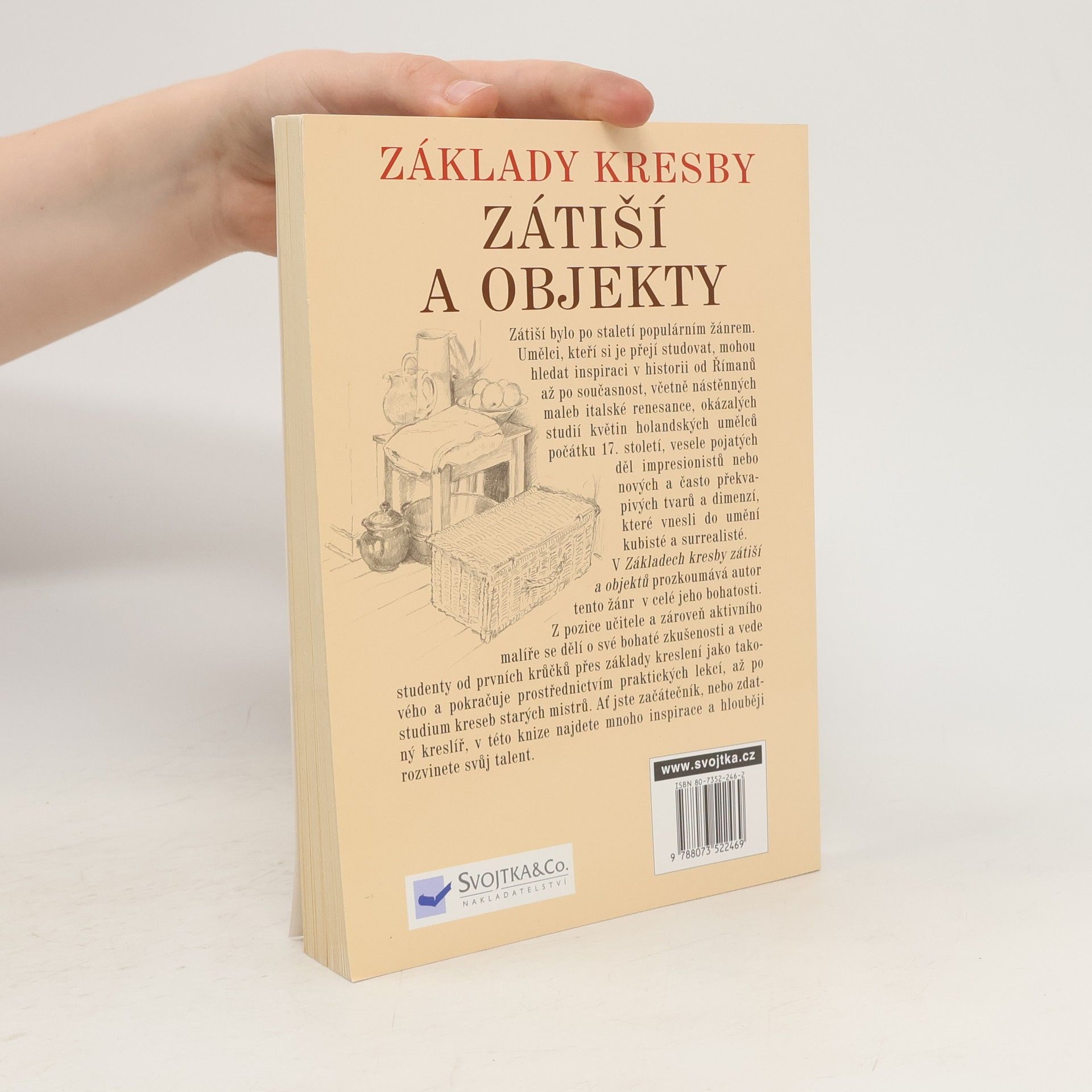 Praktický kurz pro výtvarníky. Zátiší bylo po staletí populárním žánrem. Umělci, kteří si je přejí studovat, mohou hledat inspiraci v historii od Římanů až po současnost, včetně nástěnných maleb italské renesance, okázalých studií květin holandských umělců počátku 17. století, vesele pojatých děl impresionistů nebo nových a často překvapivých tvarů a dimenzí, které vnesli do umění kubisté a surrealisté. V Základech kresby zátiší a objektů prozkoumává autor tento žánr v celé jeho bohatosti. Z pozice učitele a zároveň aktivního malíře se dělí o své bohaté zkušenosti a vede studenty od prvních krůčků přes základy kreslení jako takového a pokračuje prostřednictvím praktických lekcí, až po studium kreseb starých mistrů. Ať jste začátečník, nebo zdatný kreslíř, v této knize najdete mnoho inspirace a hlouběji rozvinete svůj talent.