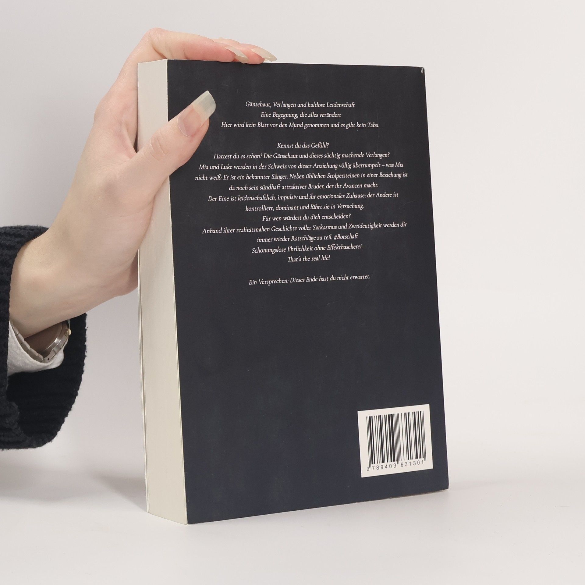 Gänsehaut, Verlangen und haltlose LeidenschaftEine Begegnung, die alles verändertHier wird kein Blatt vor den Mund genommen und es gibt kein Tabu.Kennst du das Gefühl?Hattest du es schon? Die Gänsehaut und dieses süchtig machende Verlangen?Mia und Luke werden in der Schweiz von dieser Anziehung völlig überrumpelt - was Mia nicht weiß: Er ist ein bekannter Sänger. Neben üblichen Stolpersteinen in einer Beziehung ist da noch sein sündhaft attraktiver Bruder, der ihr Avancen macht.Der Eine ist leidenschaftlich, impulsiv und ihr emotionales Zuhause; der Andere ist kontrolliert, dominant und führt sie in Versuchung. Für wen würdest du dich entscheiden?Anhand ihrer realitätsnahen Geschichte voller Sarkasmus und Zweideutigkeit werden dir immer wieder Ratschläge zu teil. #BotschaftSchonungslose Ehrlichkeit ohne Effekthascherei. ThatŽs the real life! Ein Versprechen: Dieses Ende hast du nicht erwartet.